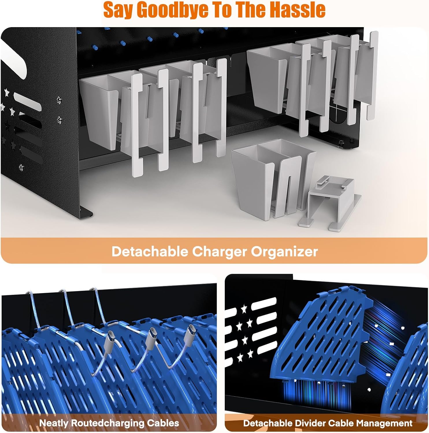 [Organized Cables, Less Clutter]Includes a detachable cable organizer to keep charging cords separated and tangle-free. Say goodbye to messy wires.