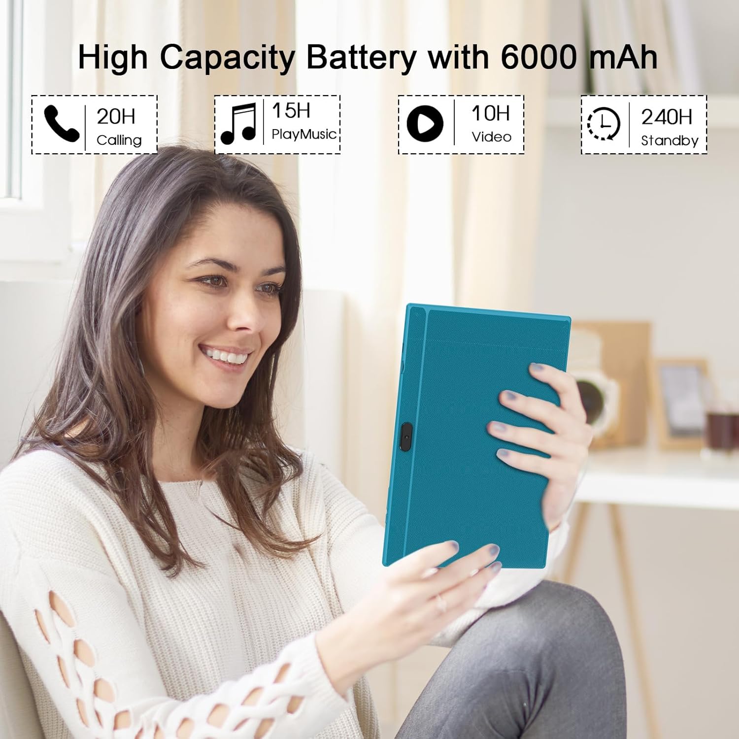 【Long Battery Life with Charger】The Android 15 tablet is powered by a 6000mAh battery and has a long battery life, ensuring long-term use, allowing you to study, work, and play uninterrupted throughout the day. Accompanying you from morning to night can bring about 6 hours of regular operation, with a battery standby time of up to 12 hours, and easy charging through the 5V2A Type-C port.