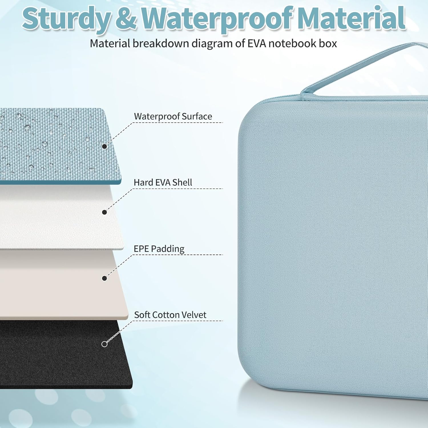 【Sturdy & Waterproof Material】:This 11.6 inch laptop hard case is made of waterproof hard EVA shell and scratch-resistant polyester fiber on the outside, and shockproof soft cotton velvet fabric on the inside to protect your device in all directions