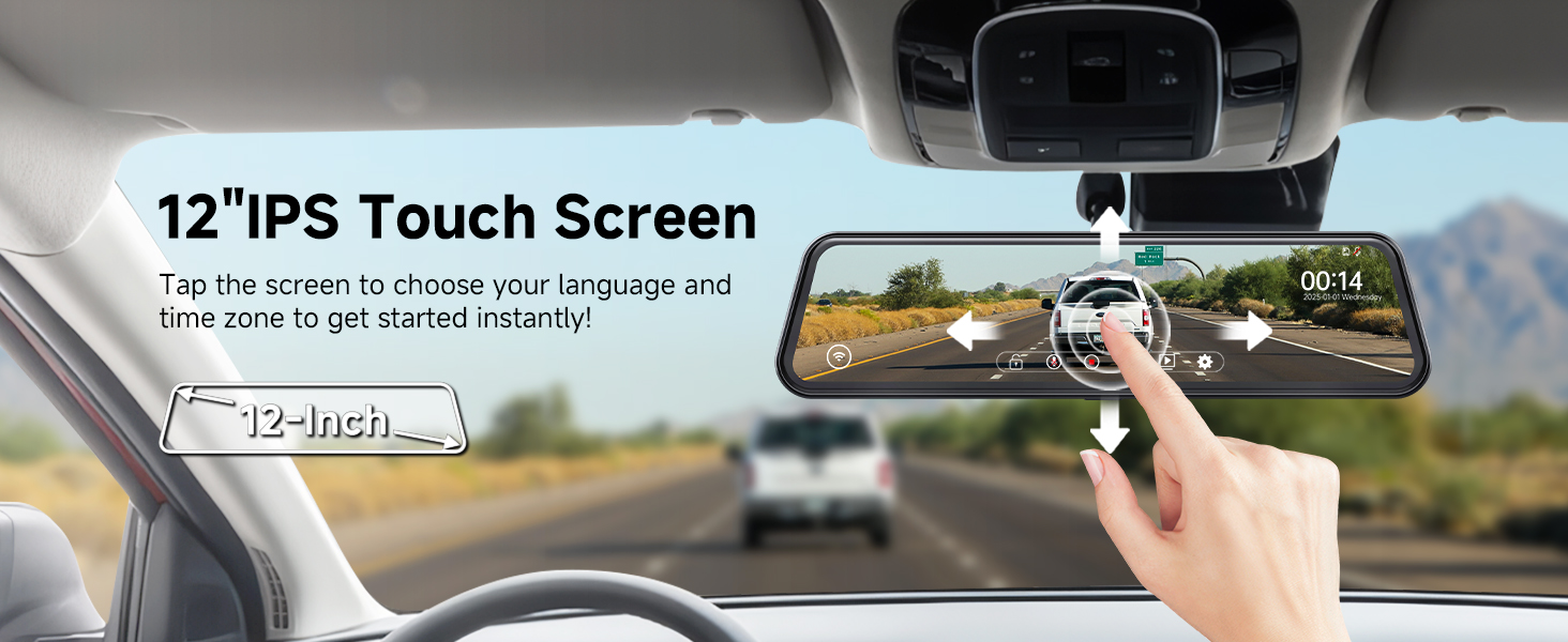 【12” inch Super Night Vision & Simple installation】12” inch Large Screen on your dash cam mirror, offering intuitive operation and real-time display,let you enjoy a wide field of vision.It comes with user-friendly installation accessories and detailed step-by-step instructions. Because of its interference-free design and easy setup, it can be seamlessly integrated into your vehicle.