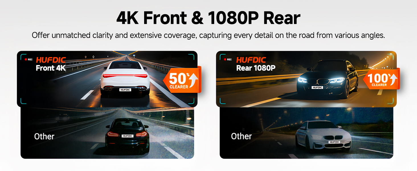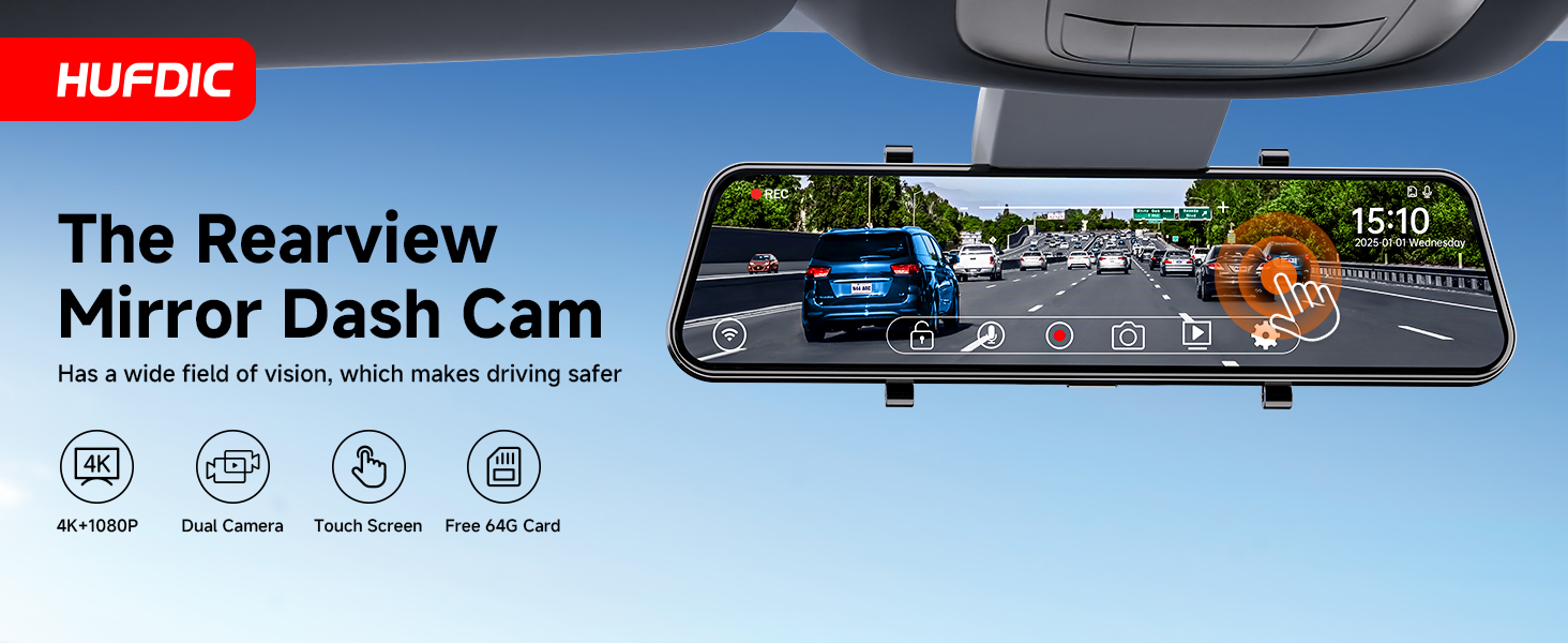 【Full-screen touch screen】This dash cam 4K is equipped with a stylish and responsive full-screen touch screen, which can easily switch and adjust all basic functions,video recording/playback, exposure adjustment, screen brightness adjustment, date/time, etc. And accurate operation every time.
