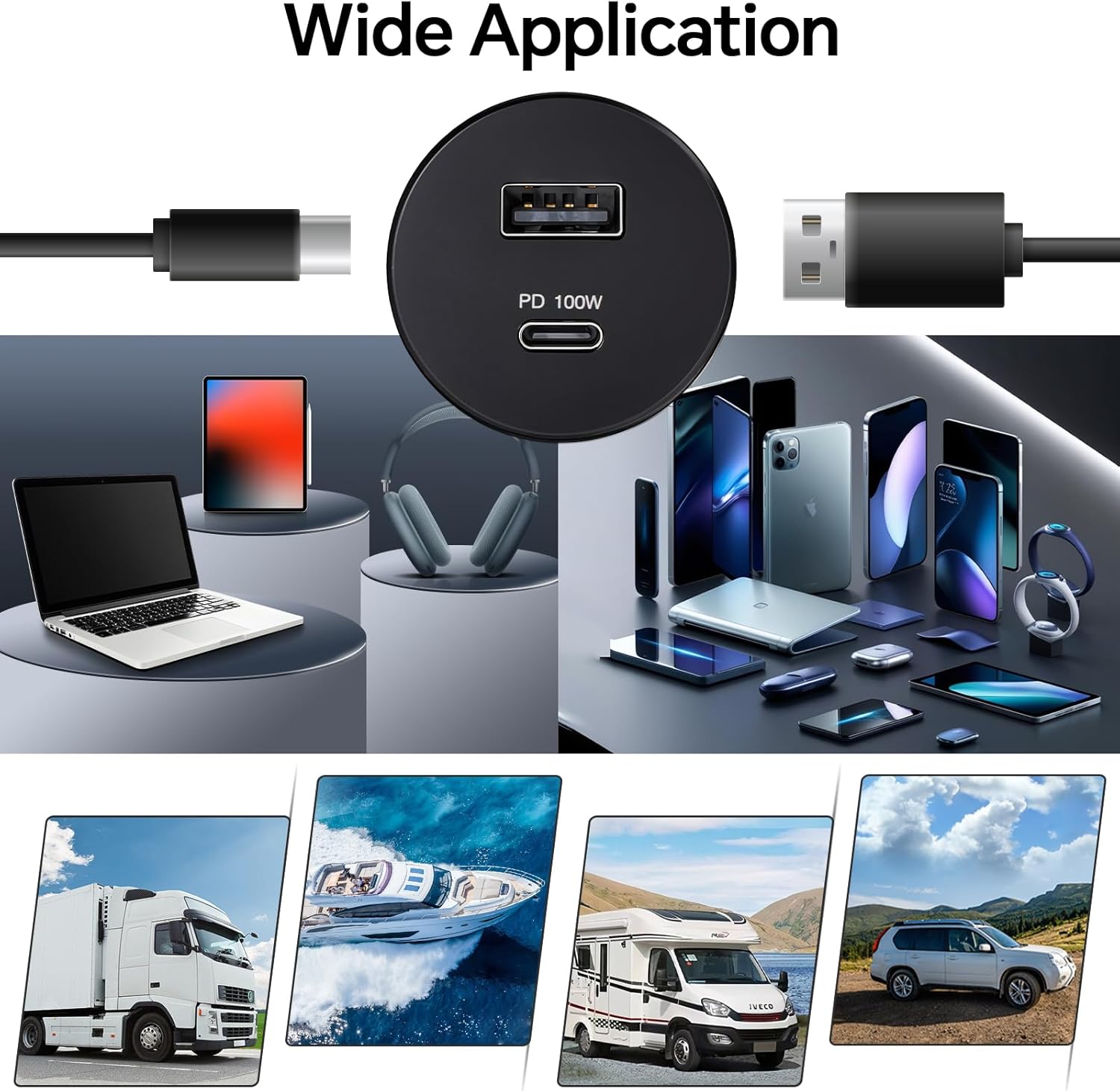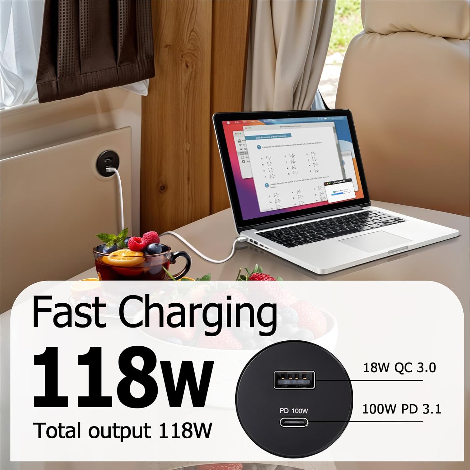 Smart Dual-Port Dynamic Allocation: Features a 100W USB-C port and an 18W USB-A port with intelligent load balancing. Simultaneously charge a laptop and smart devices, or power RV appliances (e.g., dash cams, projectors) without compromising speed