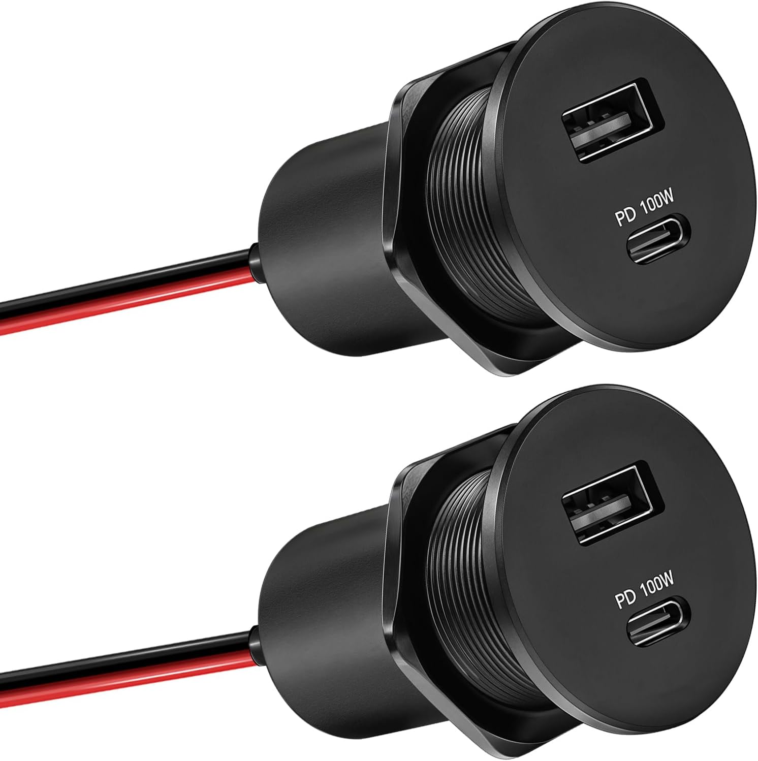 12V Aluminum USB Outlet 100W PD3.1 Type-C & 18W QC3.0 USB-C Laptop Charger Socket Dual Port Fast Charging Recessed Mount Car Charger Replacement for RV Camper Trailer Truck Boat Car (2 Pcs)