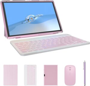 【2 in 1 Tablet with Keyboard Mouse And More】This Android tablet package is a perfect combination, 10 inch Tablet connect with a wireless keyboard and mouse, with a protective case, flexible stylus Pen, 2 in 1 tablet can meet all your needs.