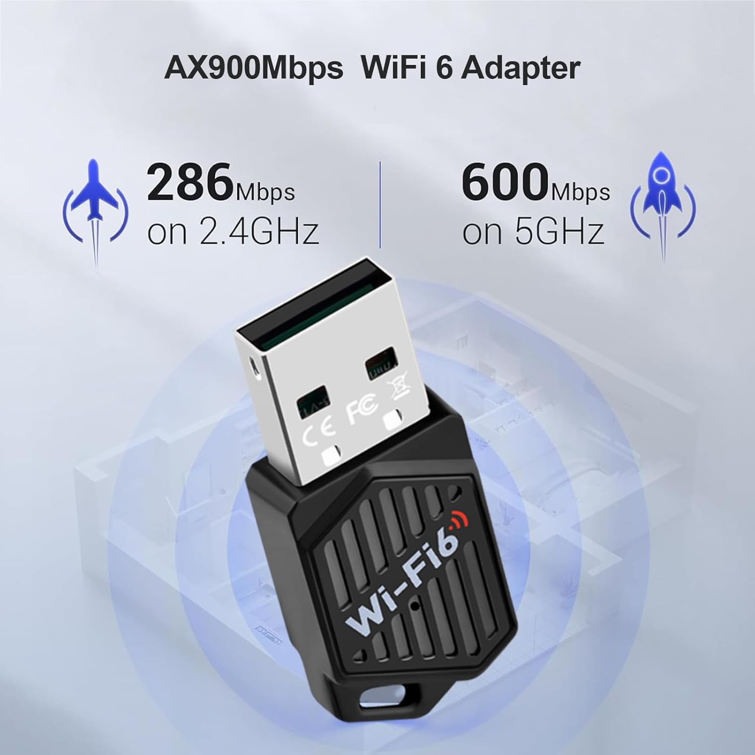【Compact and portable】 The wifi 6 adapter features a compact design for easy portability and 900Mbps high-speed transfer rate, providing portability and speed for indoor use and travel. Note: Make sure that the distance between the adapter and router should be within 30ft.