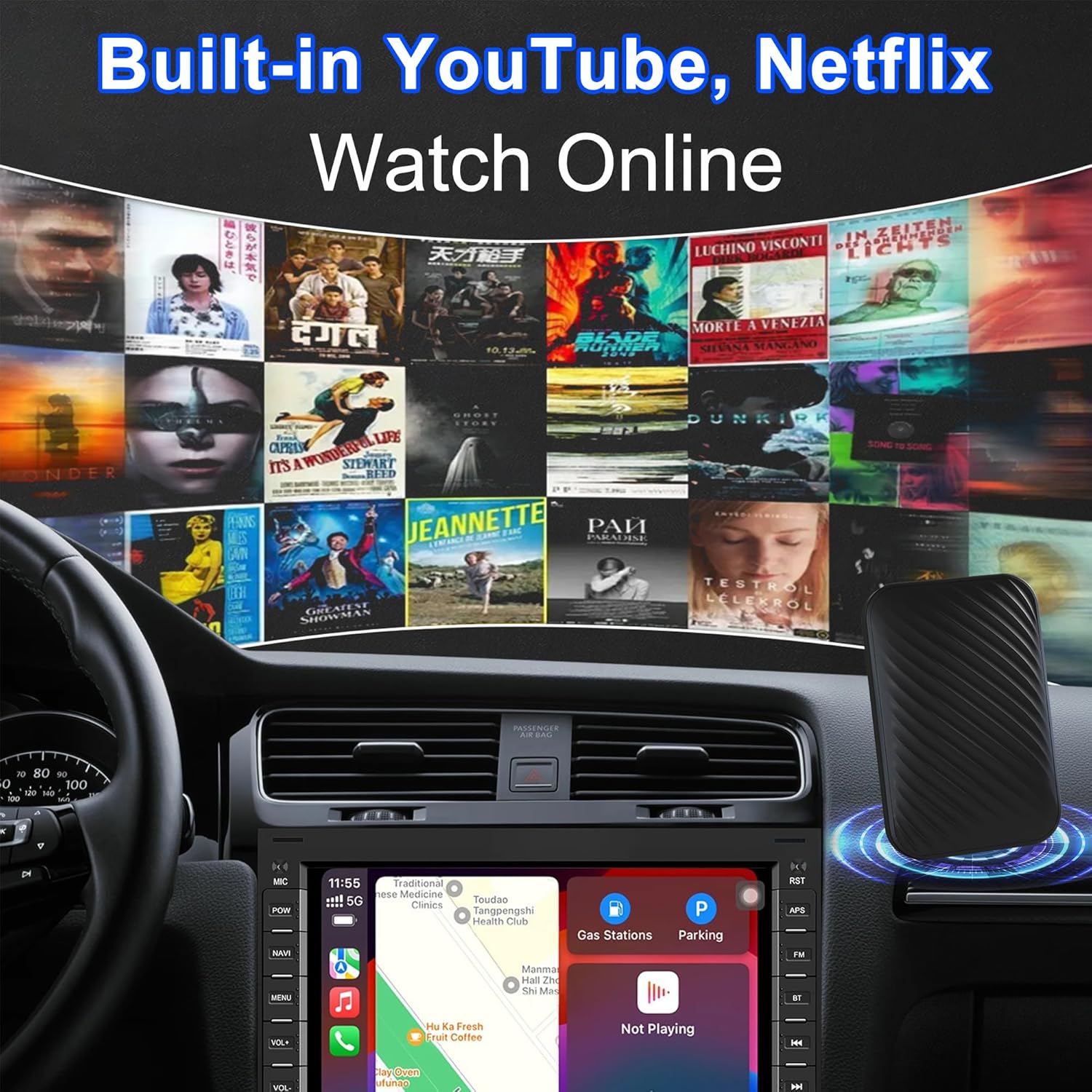 Immersive Entertainment Experience: Turn every drive into an adventure with the magic box CarPlay, pre-installed with popular apps like Netflix and YouTube. Stream your favorite shows or download new apps via the built-in Google Play Store for unlimited entertainment options. With support for up to 256GB TF cards, you’ll never run out of space for movies, music, or videos. This Netflix CarPlay adapter ensures your long road trips or daily commutes are filled with endless fun and excitement.