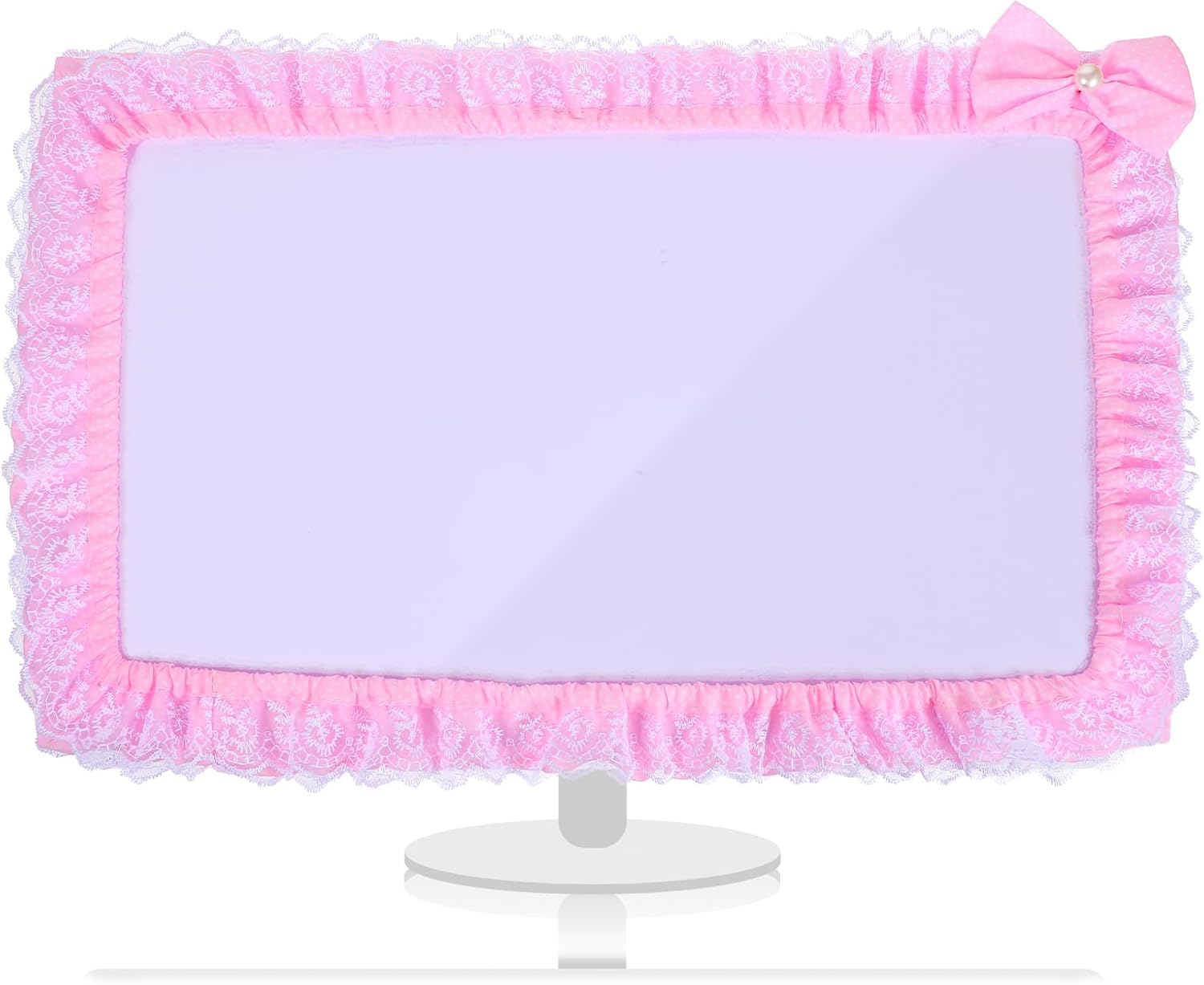 【Premium Protection】: Our pink monitor cover is made from high-quality lace fabric and polyester, ensuring your computer monitor cover effectively protects your screen from dust, dirt, and scratches. This monitor protective cover is perfect for keeping your monitor in pristine condition.