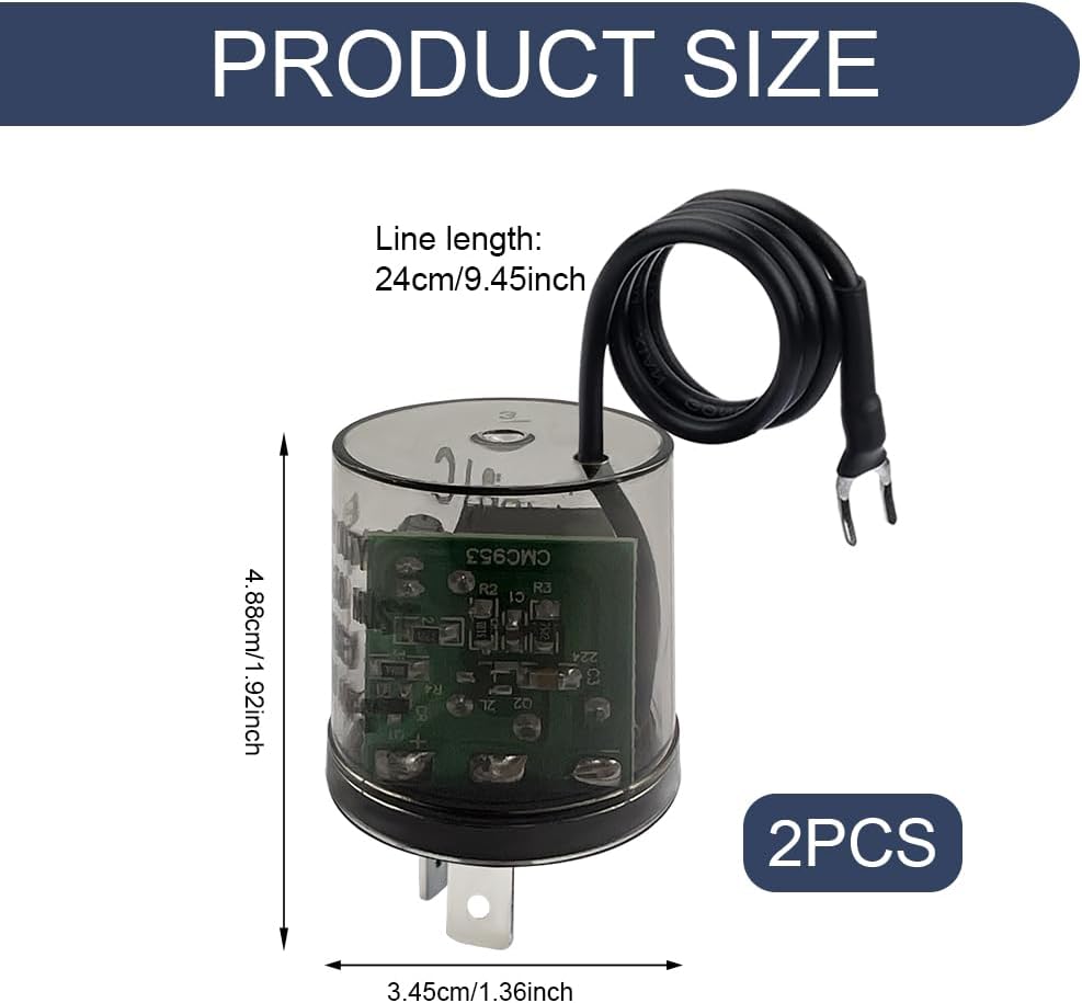 Product Introduction : This package contains two durable 2-pin LED flash relays with a wire length of 22cm, which can meet your daily usage and replacement needs. Please note that before installation, please disconnect the power supply first and then proceed with the wiring installation