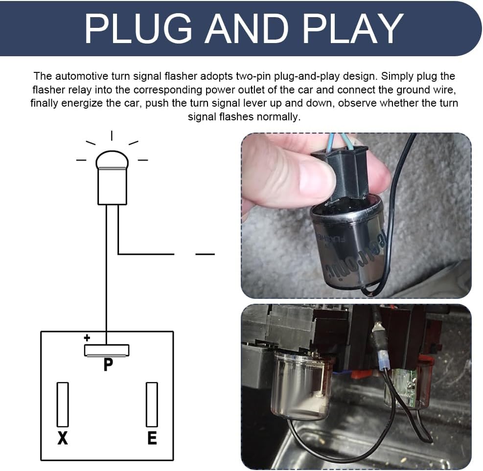 Plug and play : The electronic flasher relay has a simple 2-pin structure and can be plugged and played immediately, which is very convenient and fast. Just plug it into the socket and connect the ground wire to use it