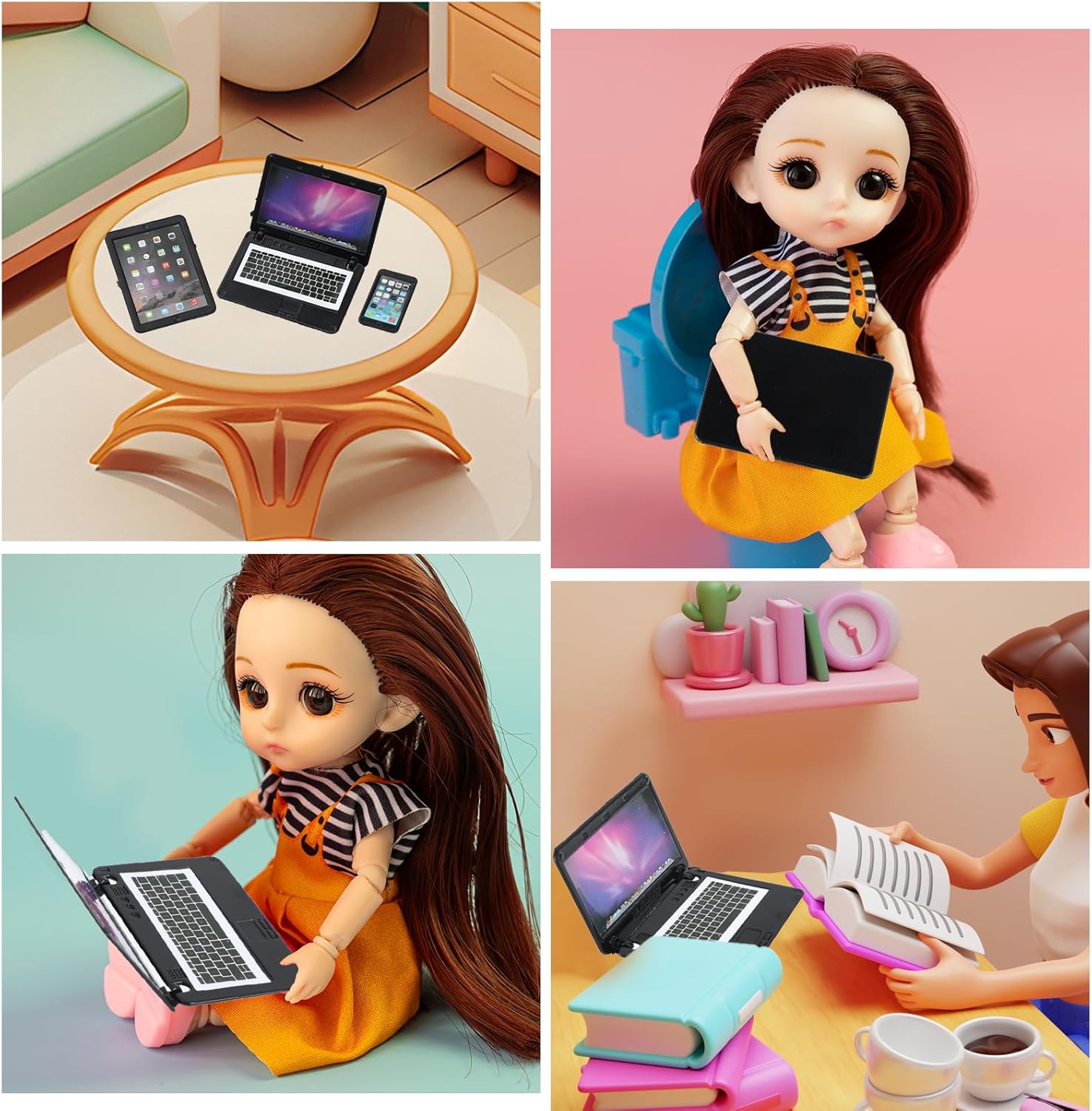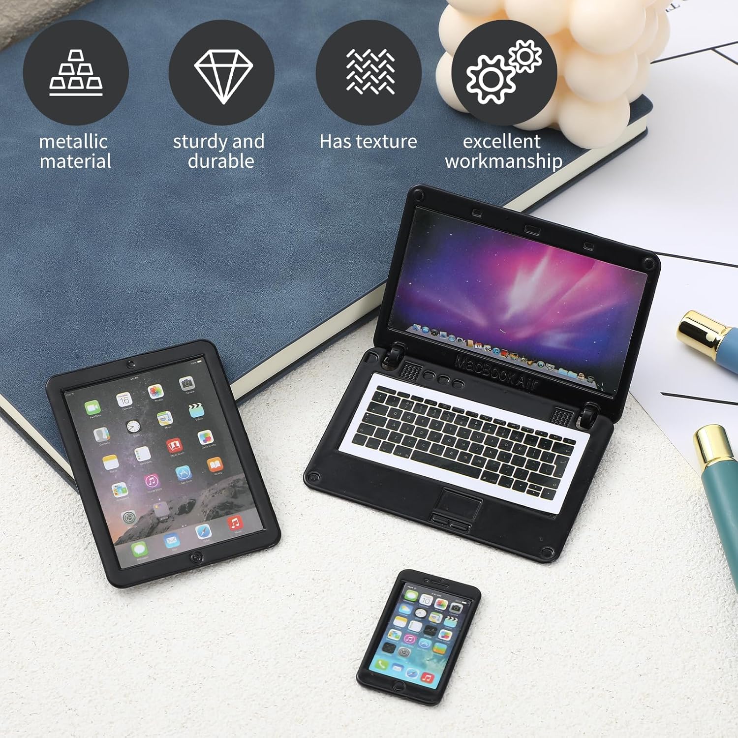 【High-Quality Metal Construction】These miniature phone Computer Laptop Tablet are made from high-quality metal, ensuring durability and a realistic appearance. The detailed design and sleek finish make them stand out as attractive and functional dollhouse accessories