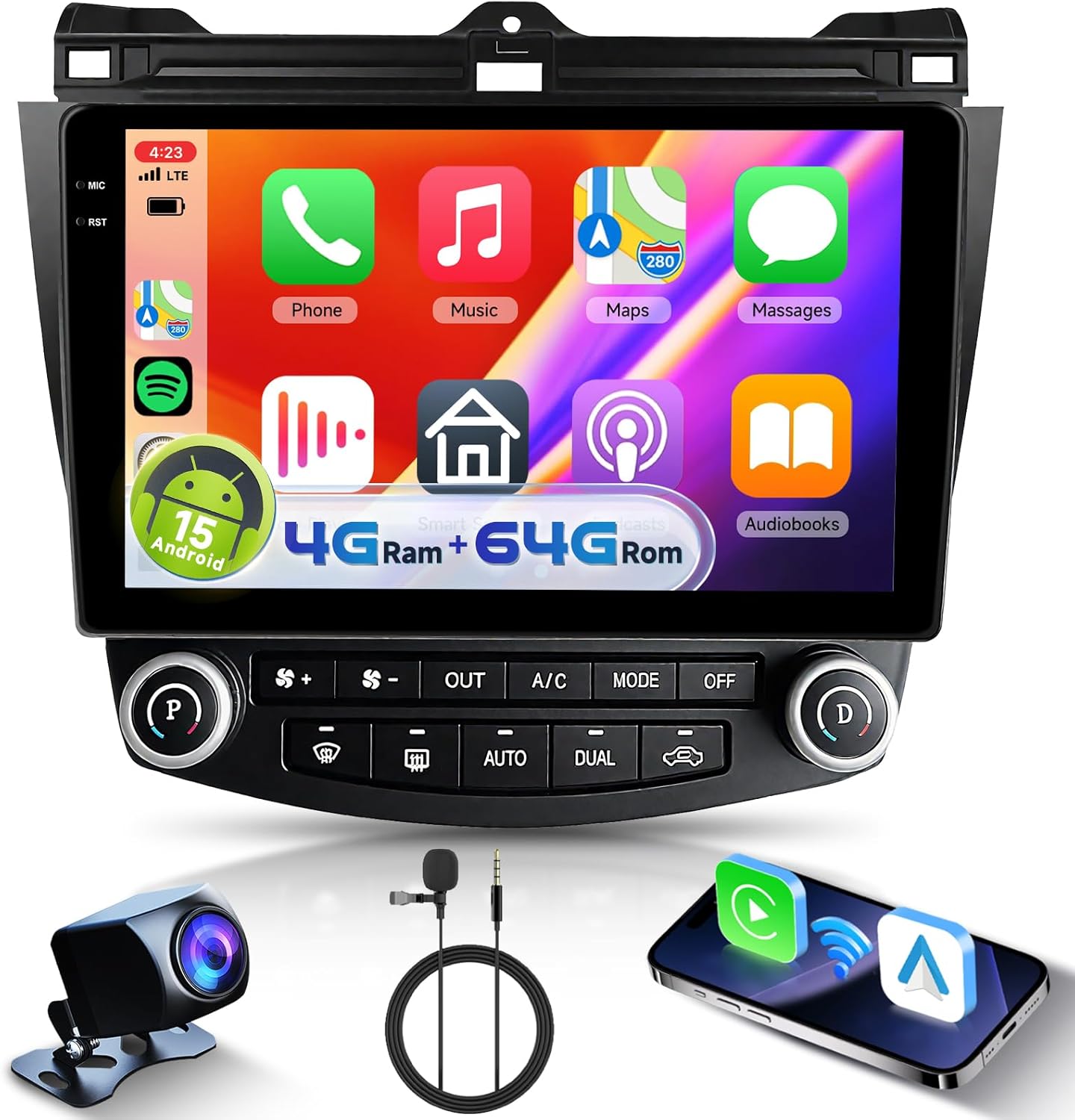 (Wireless Carplay / Android Auto) The car play radio for honda accord supports wired and wireless Carplay and Android Auto, allowing easy access to your phone’s apps, such as real-time online map, music, call, and enabling voice control, enhancing your driving safety and comfort