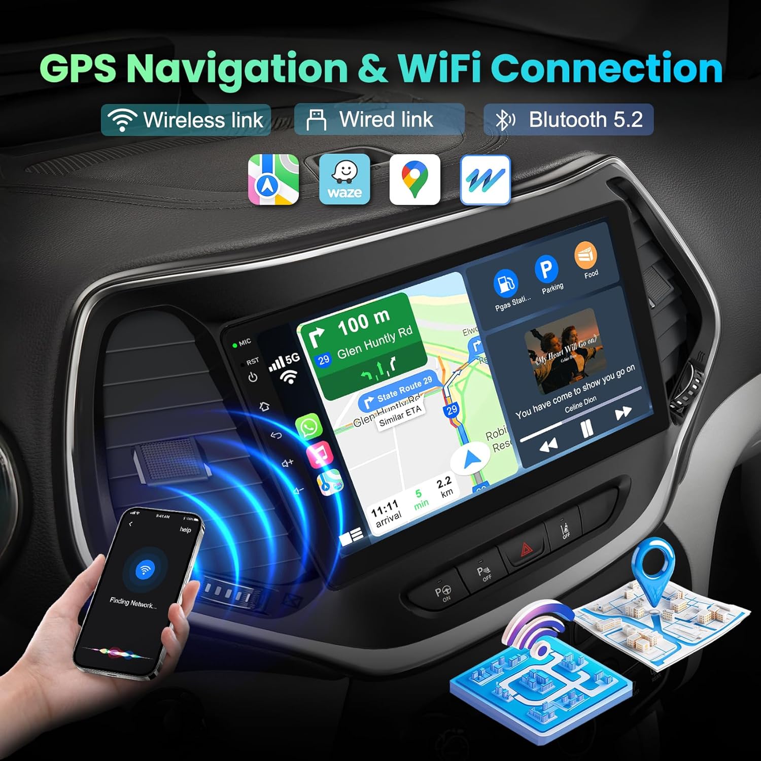 It is convenient for you to integrate your smartphone via wireless/wired CarPlay.Turn on your iPhone’s Wifi and Bluetooth, pair car stereo’s Bluetooth with your iPhone, click on the app”Zlink”, then you can use wireless CarPlay to play music, make/answer calls, navigate or use Siri to surf the internet.Note: Pls connect the signal cable first when you use carplay