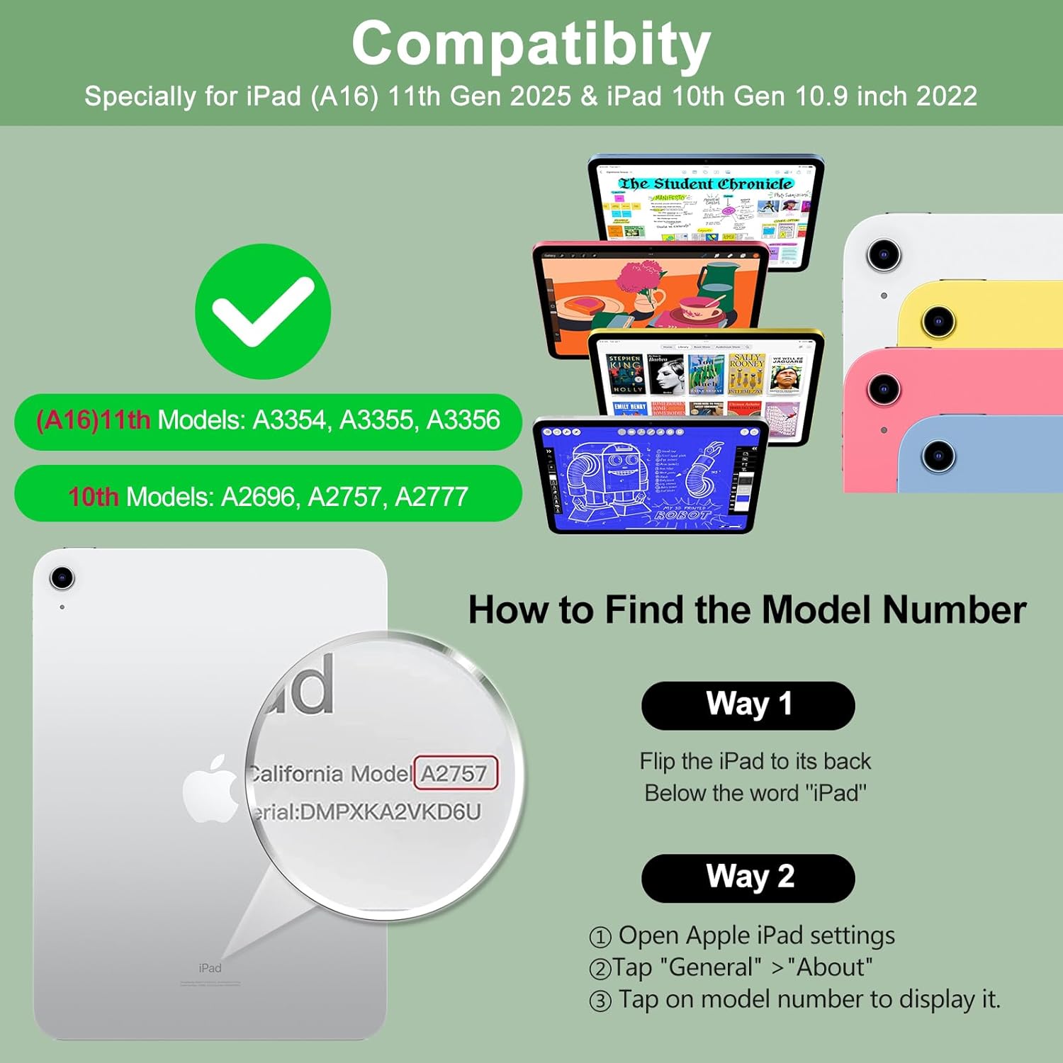 Compatibility: Specially compatible with ipad A16 11th Generation (2025), models: A3354 / A3355 / A3356, 10.9 inch of ipad 10th Generation (2022), models:A2696 / A2757 / A2777