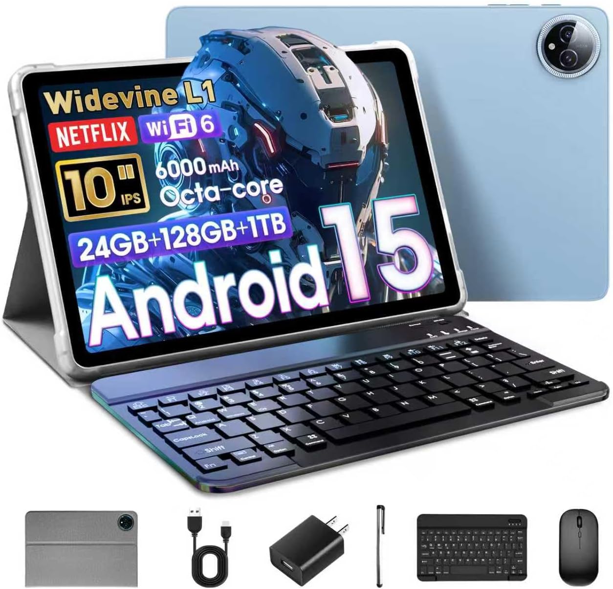 【Powerful Performance】This latest 10.1-inch tablet comes with the latest Android 15 operating system with support for more applications and a 2.0 GHz octa-core processor for improved graphics performance . You will enjoy the more smooth running than Android 15 system. Perfect for watching videos, learning, video chatting and reading e-books.
