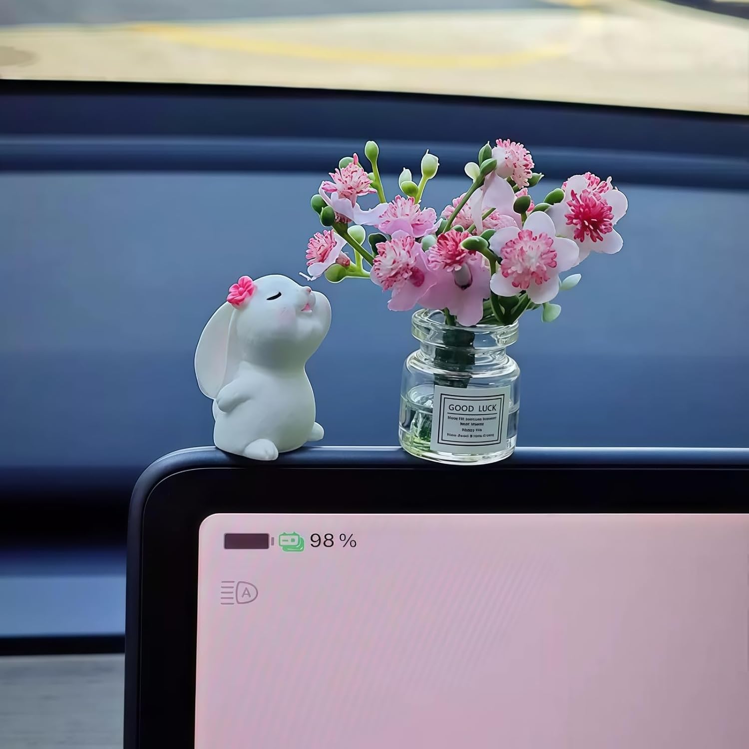 Material: this cute pink sakura flowers with rabbit statues car dashboard decorations interior for women men is made of high quality glass.