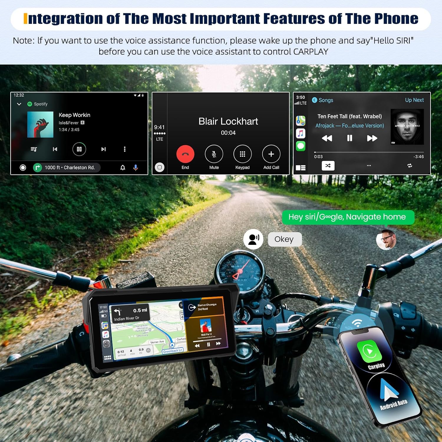 (Wireless CarPlay and Android Auto) Motorcycle screen built-in CarPlay and Android Auto system. You don’t need to connect via data cable, just connect to Bluetooth and enable WiFi on your phone.The car radio will quickly get the APP on your phone supported by the current system, such as iTunes,Apple Music,Siri, map navigation and and realize the voice command like Siri or Google Assistant to operate Apps or control the screen