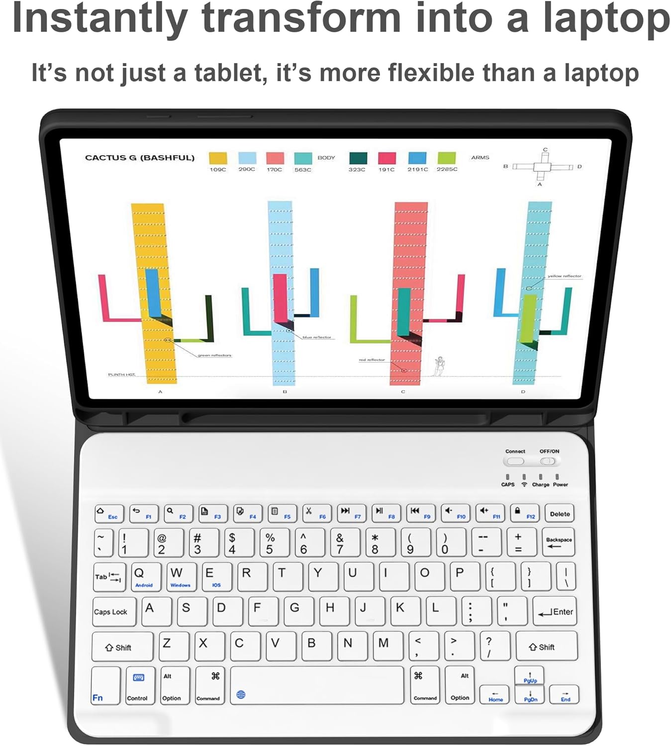 【Detachable Keyboard&Full Shortcut Keys】- The magnetic wireless keyboard can be removed from the case freely. Compatible with Android, iOS, Windows. Just press Fn and corresponding keys(QWE) to change the keyboard system. Hot keys Customized for Galaxy Tab, Full Shortcut Keys give you a more efficient way to use your keyboard.