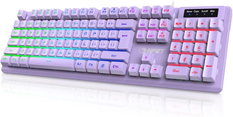 NPET K10 Wired Gaming Keyboard, RGB Backlit, Spill-Resistant Design, Multimedia Keys, Quiet Silent USB Membrane Keyboard for Desktop, Computer, PC (Purple)