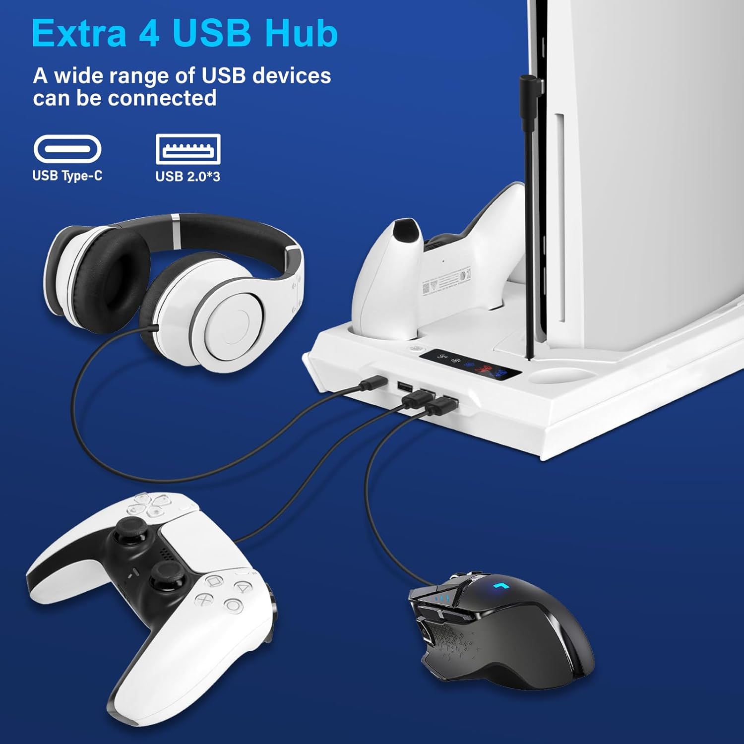 All-in-One Storage Solution: This PS5 stand is designed to hold your headset, dual controllers, media remote, and PS5 console all in one place. It helps keep your gaming area organized while perfectly matching the aesthetic. A great alternative to the official horizontal base stand.