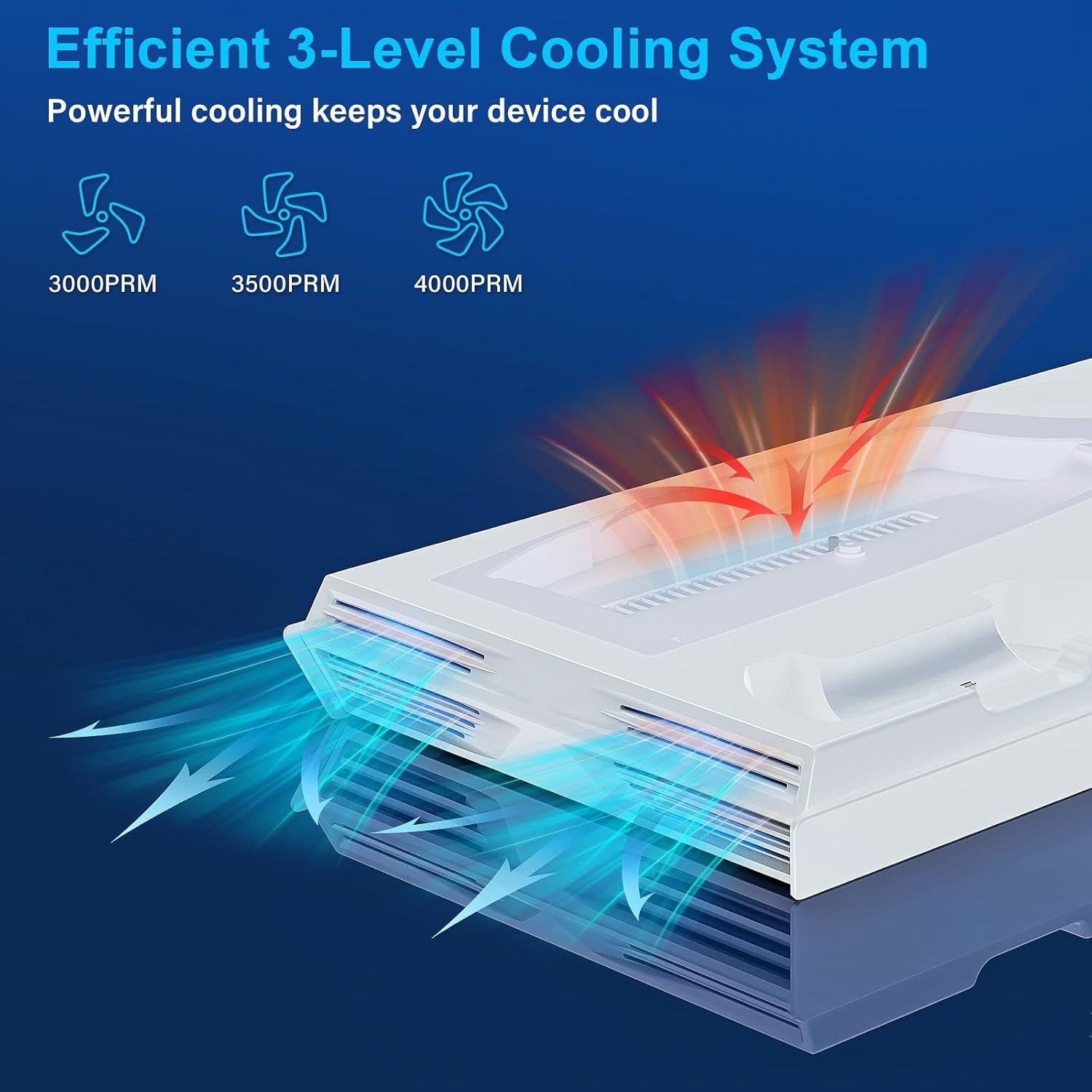 Enhanced Cooling with Adjustable Fans: Equipped with 3 adjustable fan speeds, this cooling station efficiently dissipates heat from your console. The built-in LED indicators let you easily monitor and control fan speeds for optimal performance.