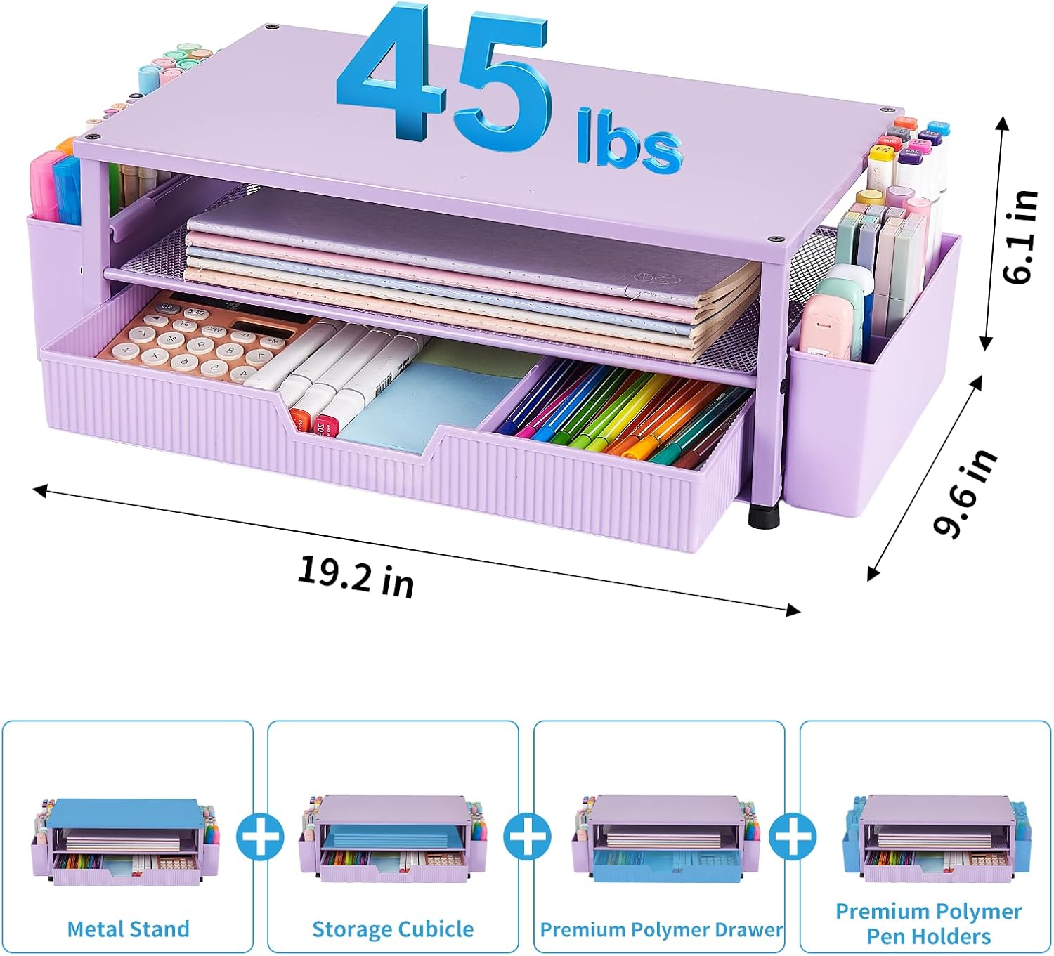 【Ergonomic Eye-Level Comfort 】Elevate your screen to the perfect eye level to eliminate neck strain and slouching. ECOLOVI desk organizer monitor stand promotes a healthier posture, reducing fatigue during long hours of work or studying, so you can stay focused and productive all day