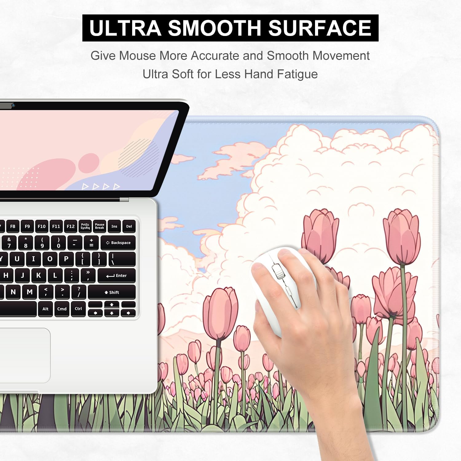 Ultra Smooth Surface: This large mouse pad for desk adopts superfine cloth on cover, it allows your mice glide smoothly while maintaining excellent speed and control. Optimized for high DPI mouse, works well with mechanical, wireless and optical mice