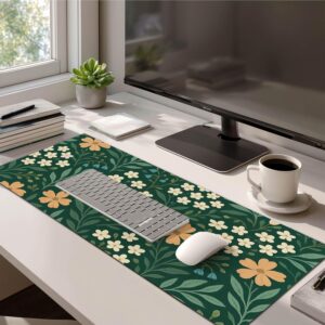 Floral Large Mouse Pad 31.5×11.8 Inch Gaming Desk Mat Non Slip Base XL Keyboard Pad Extended Computer Mat Waterproof Mouse Mat Desk Accessories for Office Home Desktop