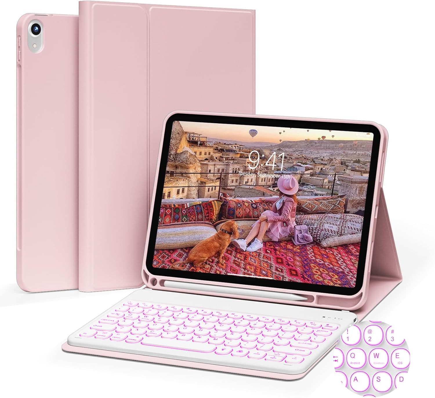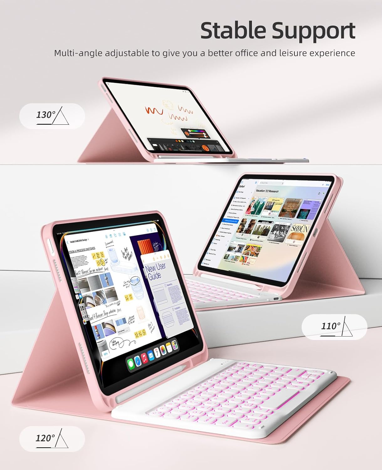 ➤【Adjustable 7 Colors Backlit Keyboard】Engineered with precision-etched LED panels,this iPad keyboard case transforms your tablet into a dynamic workstation with 7 customizable backlight modes. From midnight cobalt to gamer-style RGB pulse – perfect for coffee shop brainstorming or late-night Netflix marathons.