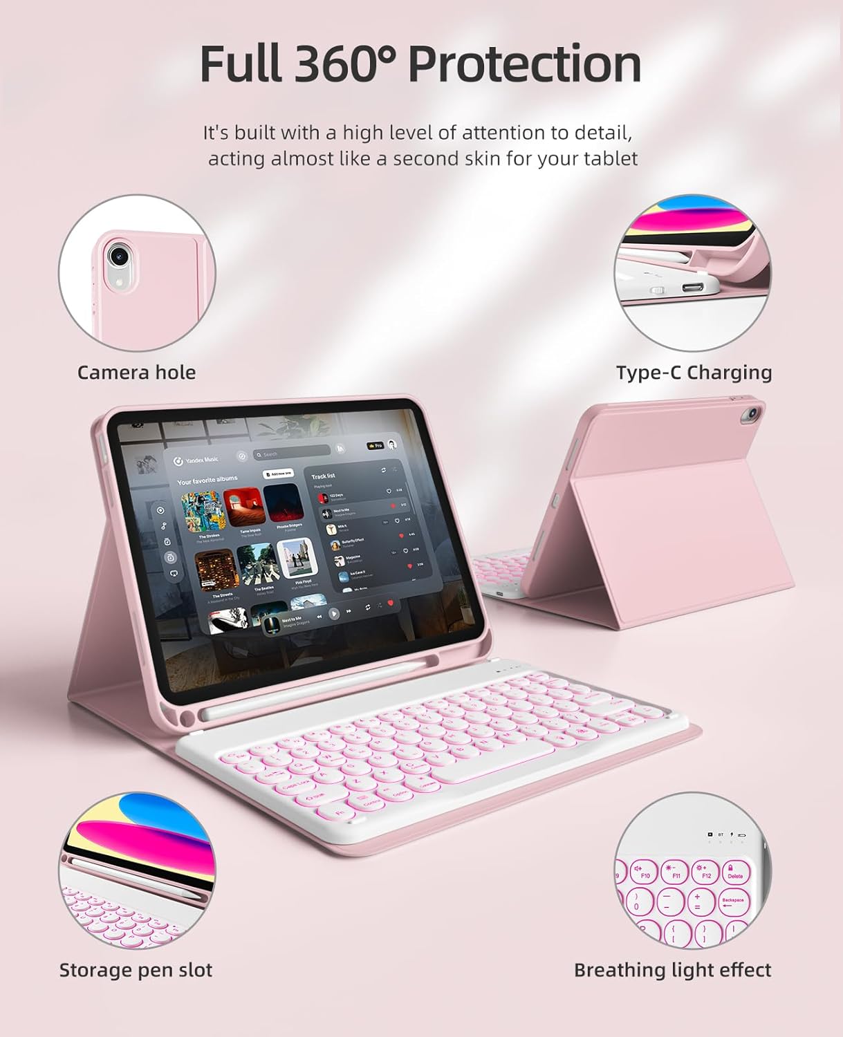 ➤【After-sales Service】GKABXY as a reliable brand,Our Support Team operates 24/7 friendly customer service.If you have any questions,please feel free to contact us via message,we will help you at any time. Your satisfaction is our priority. Package including 1 x case for iPad 10th generation,1 x wireless keyboard,1x Type-C charging cable,1x user manual.Please kindly note iPad and pencil are NOT included.