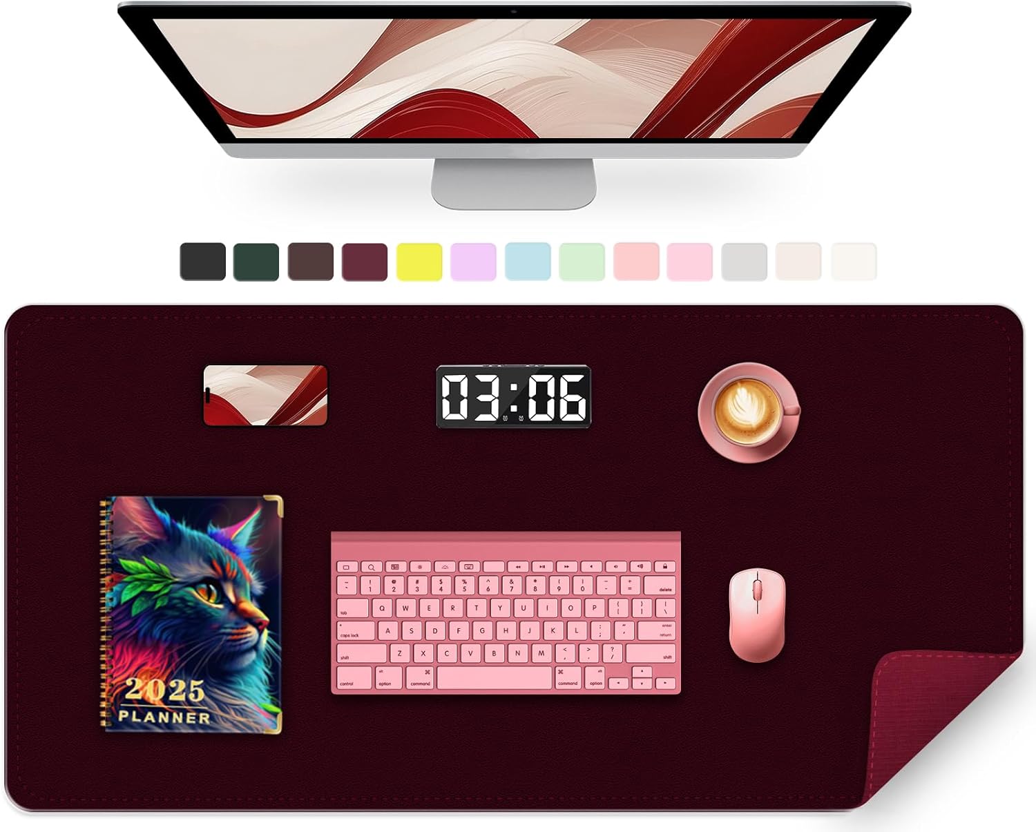 Leather Desk Mat Protector: Made of durable PU leather and suede material, the desk pad provides protection for your desk surface and keeps your desktop accessories in place. The Sewing Side of keyboard pad prevents peeling and increases durability. Tasteful synthetic computer mats provide protection for your desktop and add stylish and elegance to your space