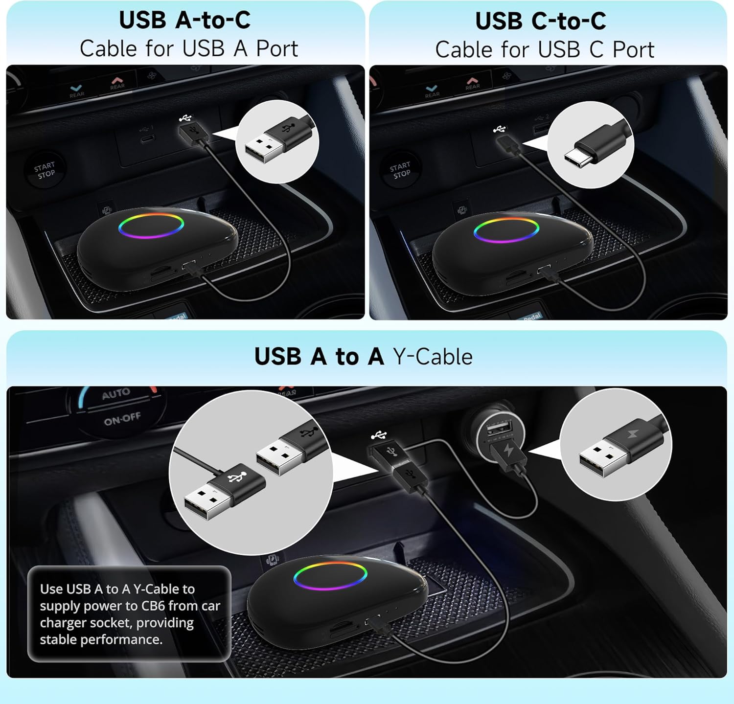 【Plug & Play – 98% Car Compatibility】Works with iPhone 5+/iOS 9.0+ and Android 11.0+ (some from Android 9.0+). Compatible with 98% of wired CarPlay/Android Auto stereos. Plug in with included USB cables, no tools required, and start driving smarter. Backed by 12-month technical support (extendable to 18 months) after purchase.