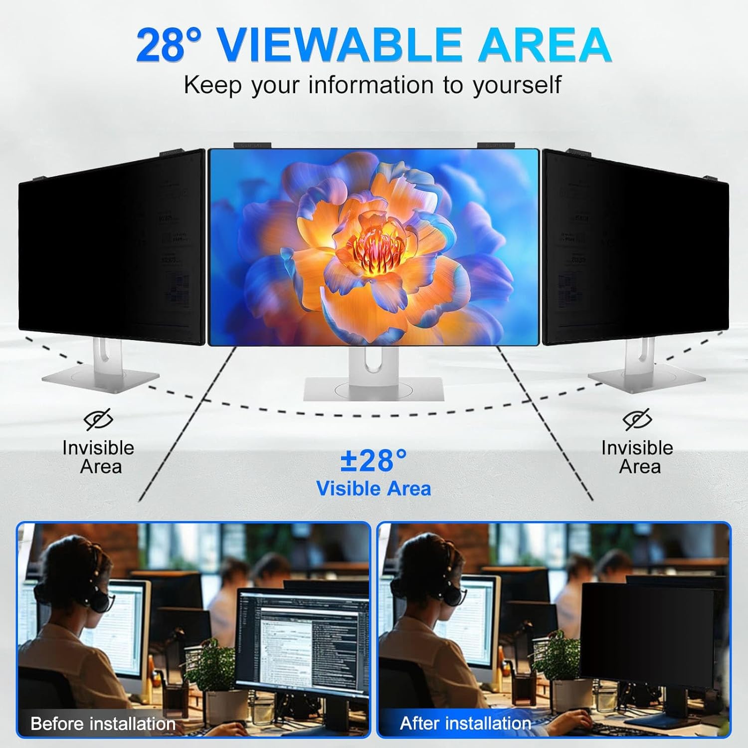 [install/remove within 1 second – Effortless Magnetic Design]: Zero installation with infinitely reusable magnets! This privacy screen for computer monitor instantly automatic adsorption to your monitor and removes cleanly, no adhesives. Switch between devices or scenarios effortlessly with the hanging magnetic privacy screen for monitors, easily remove it and hang it on the back of your monitor when you don’t need it. making it the most convenient computer screen privacy shield
