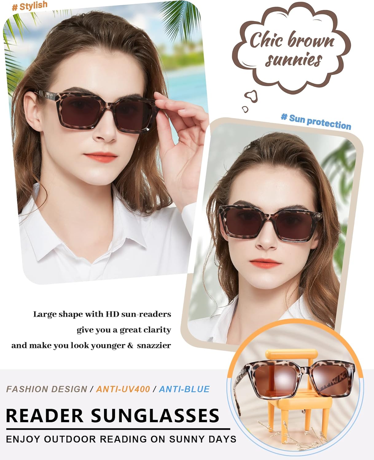 【FASHION BROWN TINTED】 – reader sunglasses for women 2.0 has sunglasses and full reading glasses in a one, give you a broader vision to enjoy outdoor reading time without switching between sunglasses and readers. With UV400 protection and blue light blocker always protect your delicate eyes from the sun and electronic devices no matter what.