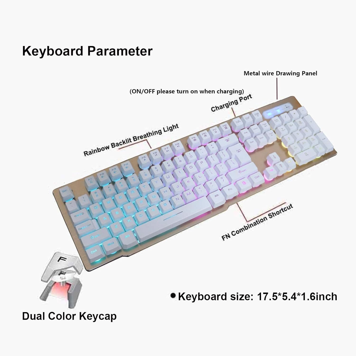 MK500 Wireless Keyboard and Mouse Combo, Ergonomic Full Size Antighosting Multimedia Keys with Optical Backlit Mice, 2.4G Rechargeable RGB Gaming Office Set for PC Laptop Computer Desktop (White)