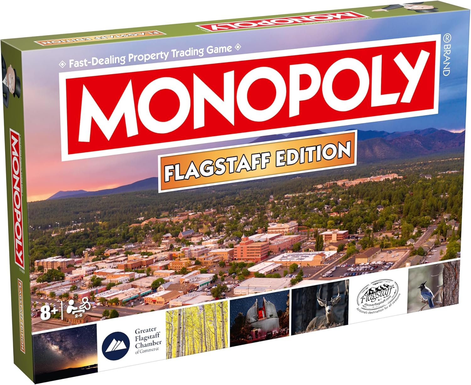 Whether you’re a local or exploring Flagstaff from afar, this Monopoly edition offers a dynamic experience that highlights the unique character and natural beauty of the region. Dive into the Monopoly world with a version tailored for Flagstaff’s lively and welcoming community!