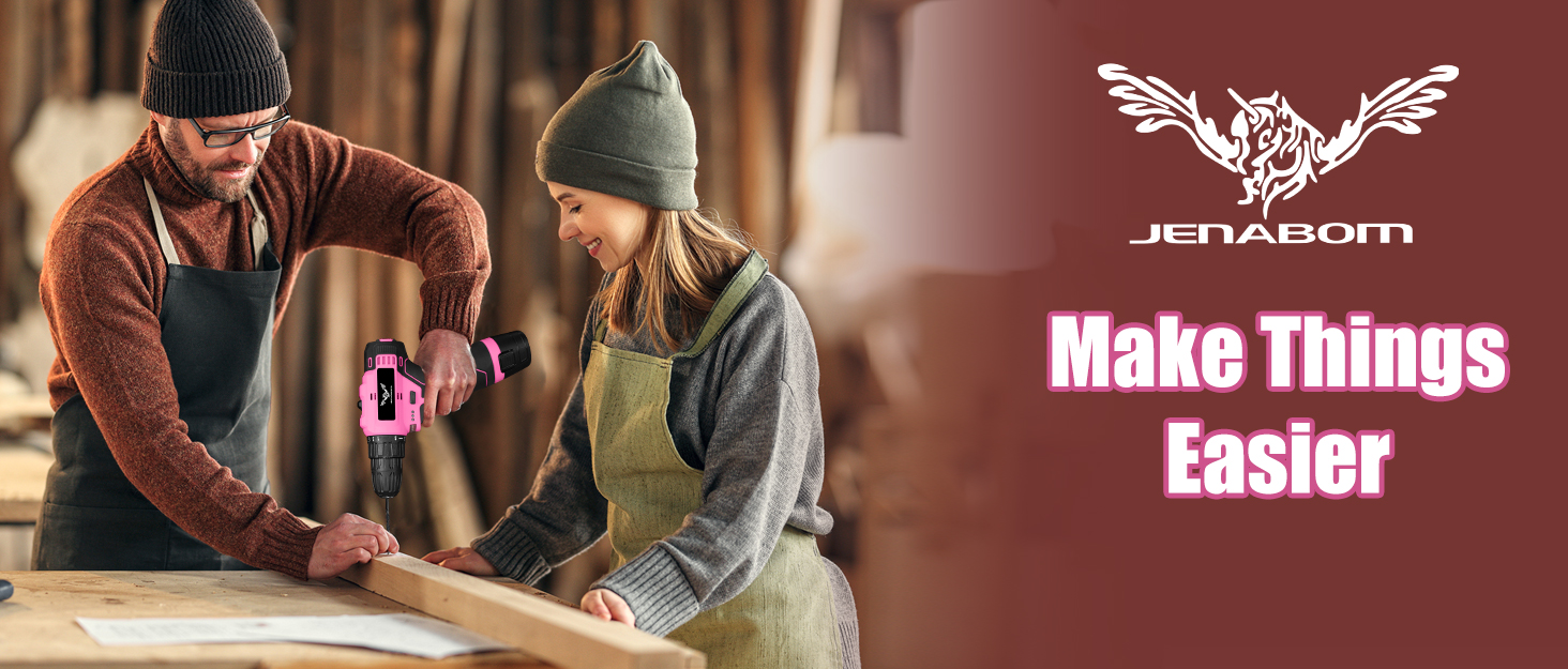 【Pink Cordless Drill with LED】The 12V tool kits can be used for drilling home repairs, furniture assembly, or garden projects, its cordless design allows unrestricted movement. Equiped with built-in LED light, it can be used in a dark environment