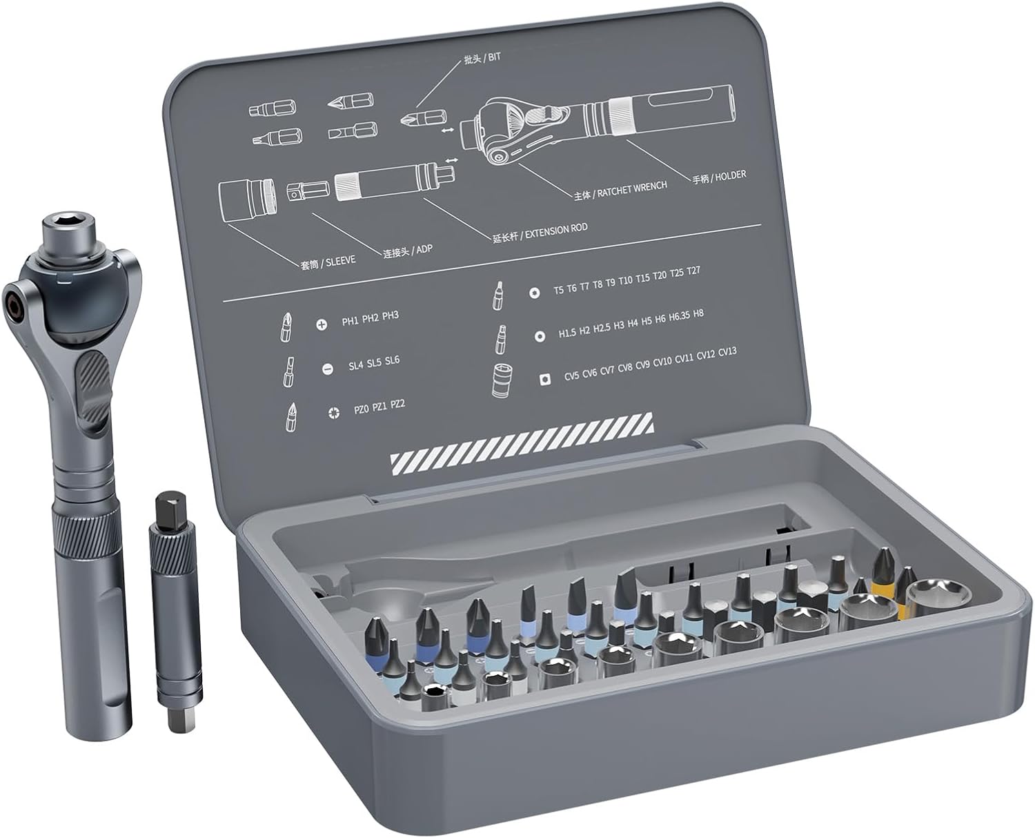 BUILT FOR EVERY TASK – 28 S2 alloy steel bits covering five major types of bit models, 9 CRV chrome vanadium steel sockets allow you to switch into ratchet wrenches quickly. Through the magnet device, it can be disassembled and assembled into different shapes