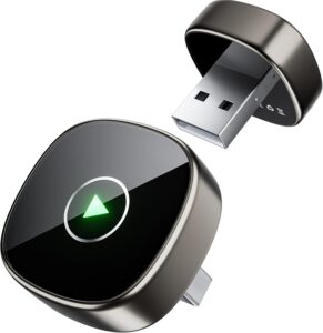 【Wireless Freedom, Lightning-Fast Connection】This CarPlay wireless adapter delivers OEM-level performance, preserving your original system’s full functionality—including Apple/Google Maps, Spotify, Siri, and voice assistant—while supporting all factory controls. Its ultra-compact, tapered design is over 50% smaller than others, fitting flush with the USB port for a clean, nearly invisible look, and comes with both USB-A and USB-C extension cables for versatile installation.