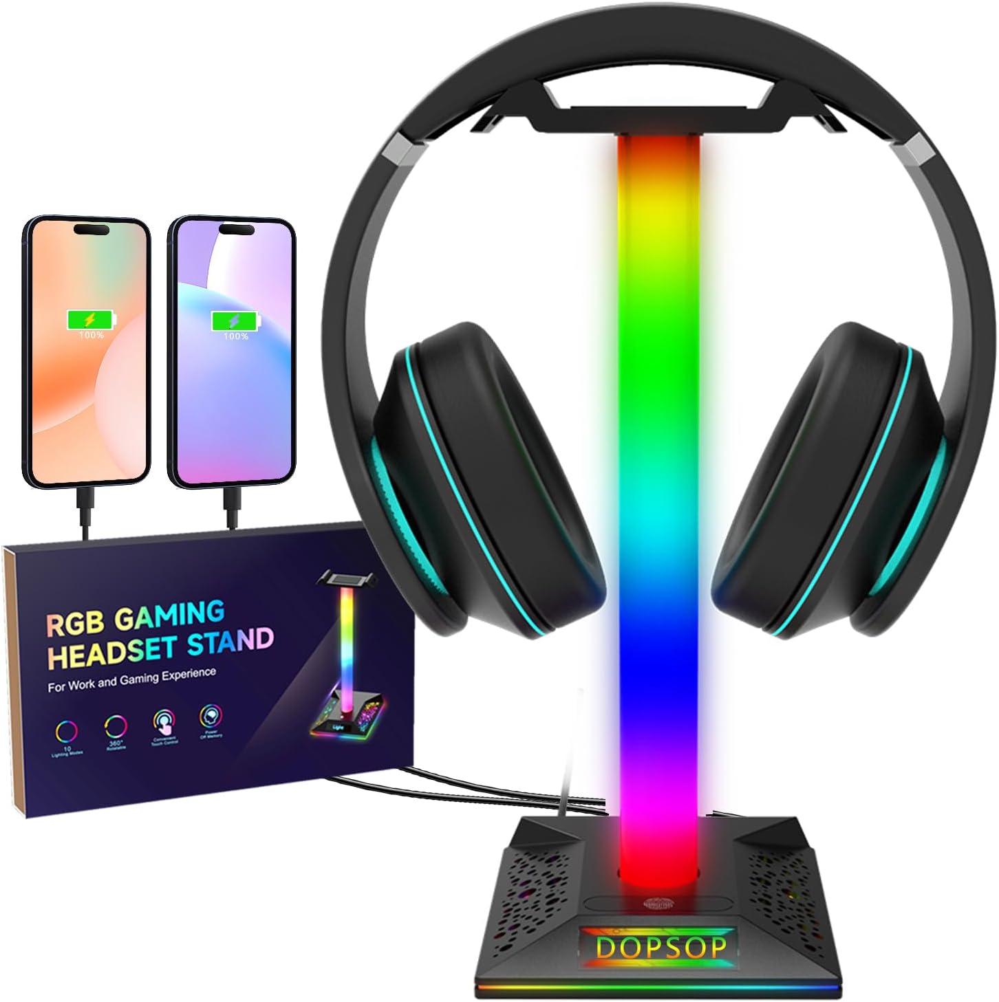 【Perfect Gaming Accessories】: Headphone stand designing to hanger your headphone, save the desk space. RGB light designing to create a fantastic gaming atmosphere. USB Ports designing provide you more function.