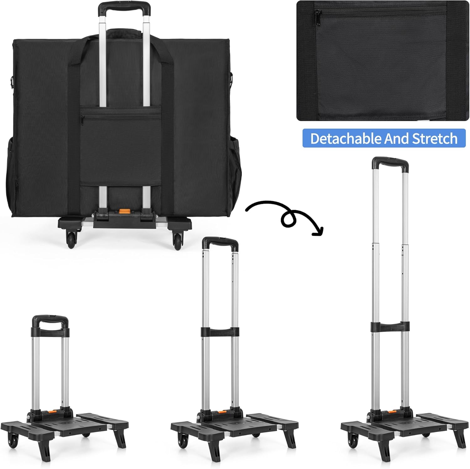 【Multifunctional Detachable Trolley】The folding and adjustable Hand Truck with 2 wheels is convenient to transport computer on trips.Safe and secure,sturdy hard panel reinforcement in front flap for extra screen protection.At the back,the luggage strap with small pocket is perfect for your small items,the elastic pocket design on both sides makes it more convenient for you when traveling.