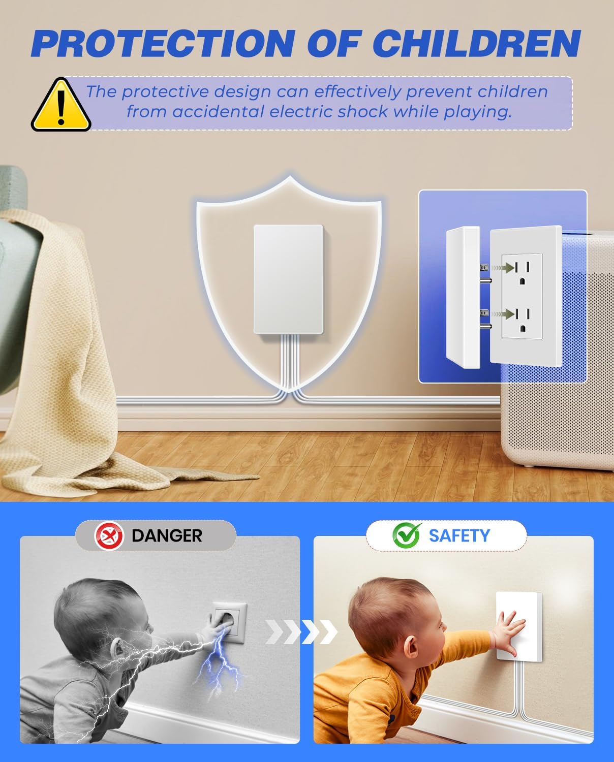【CHILD & PET-SAFE OUTLET COVERS】Our baby proof outlet covers have child and pet-friendly design, featuring a neat socket outlet cover and flat extension cord , prevent access to and chewing of dangerous electrical plugs and cords. Rest easy with our outlet cover baby proofing, ensuring a secure environment around slim flat plug, and multi outlet cover extension cord.