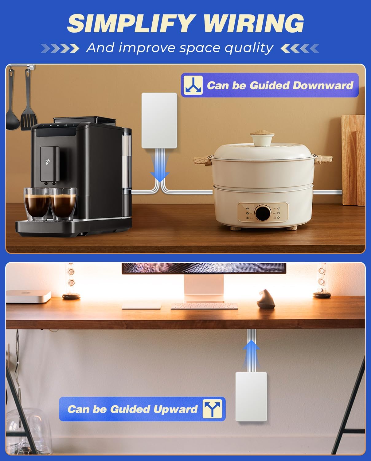 【SAY GOODBAY TO CLUTTERED PLUGS AND CORDS】Streamline your space with our ultra-thin outlet cover extension cord. Say goodbye to clutter and hazards with our flat extension cord.