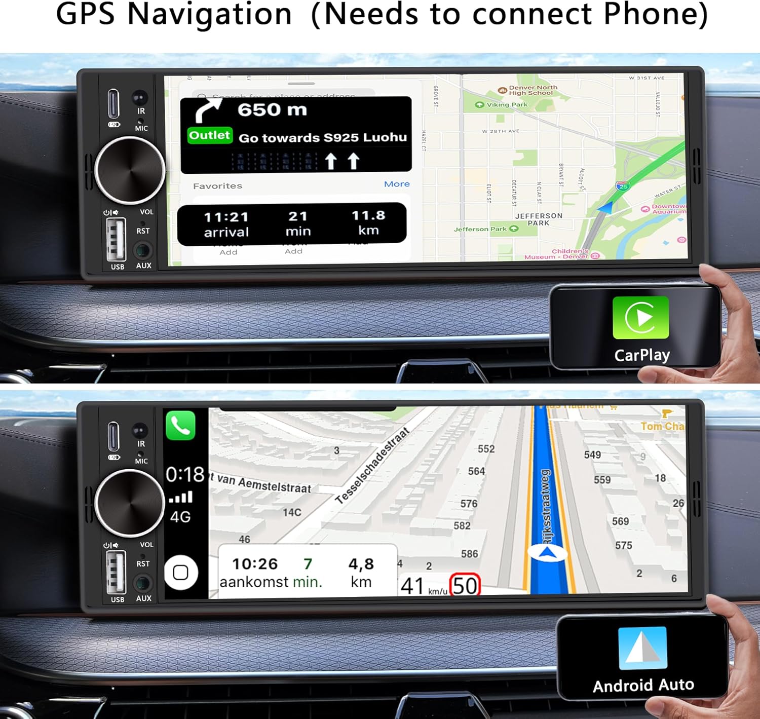 【Wireless & Wired CarPlay & Android Auto】This Bluetooth car stereo supports iOS/Android cell phone users with wireless CarPlay and Android Auto features, which accesses your phone’s contacts, email, radio, notifications, maps and navigation. So you can make calls, access music, do GPS navigation, send and receive messages and more!