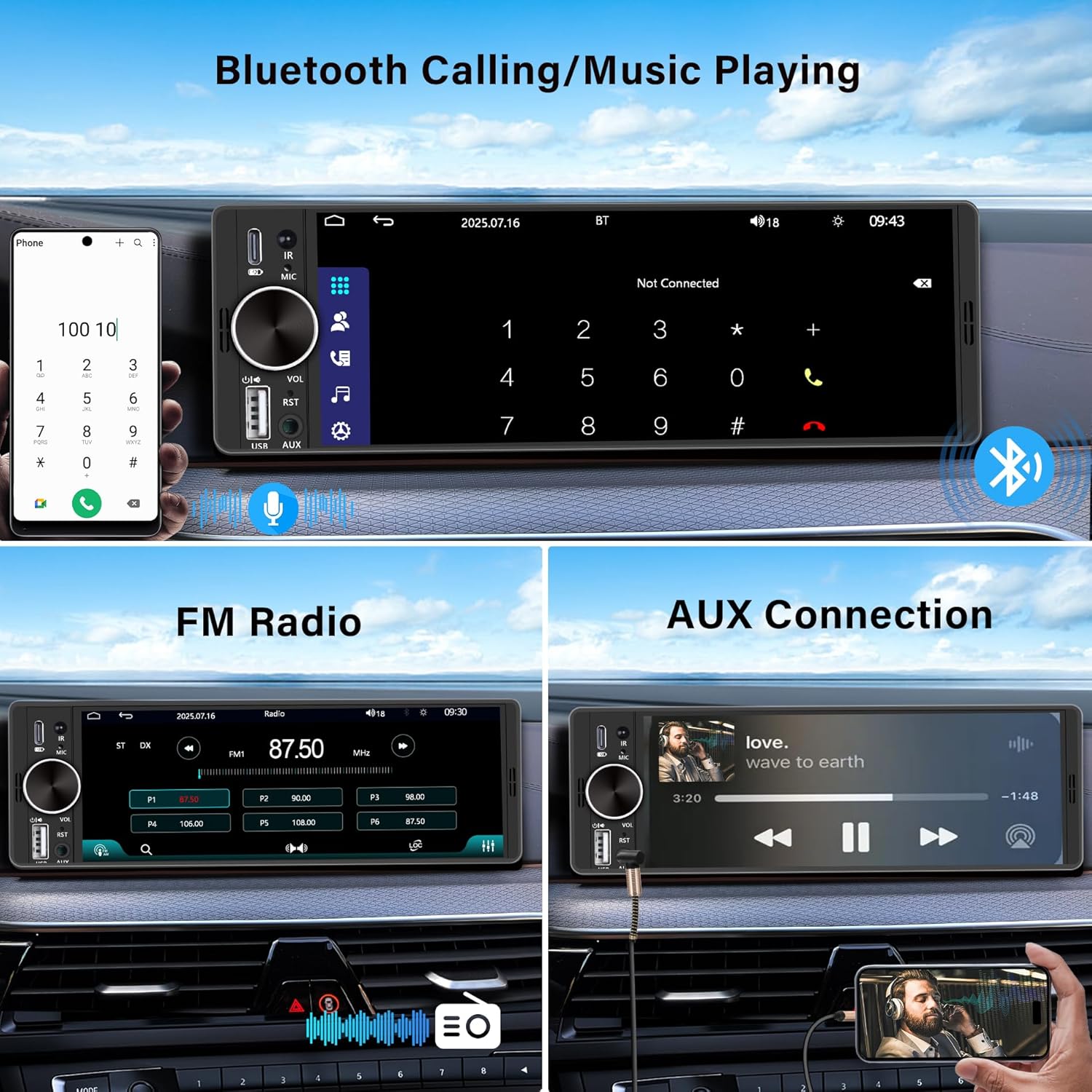 【Bluetooth and Output Mode】This Bluetooth car stereo comes with audio output and supports both Bluetooth and FM function, which allows you to make hands-free calls and play Bluetooth music anytime, anywhere, and the built-in FM radio with 18 preset stations allows you to listen to different broadcasting stations and news, and it is equipped with 2 USB ports, which you can use to play music or charge your phone.