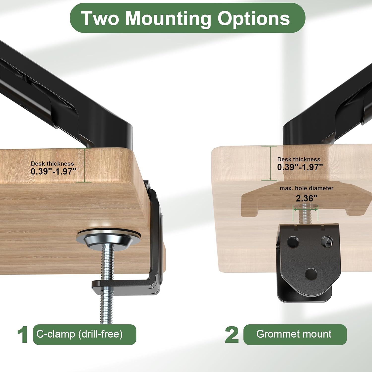 Easy to Assemble: Assembly is easy with only several steps! It supports C-clamp mount (drill-free, compatible with desk thickness of 0.39″-1.97″) and grommet mount (desk thickness of 0.39″-1.77″; hole diameter of up to 2.36″). Comes with clear instructions and all necessary mounting hardware