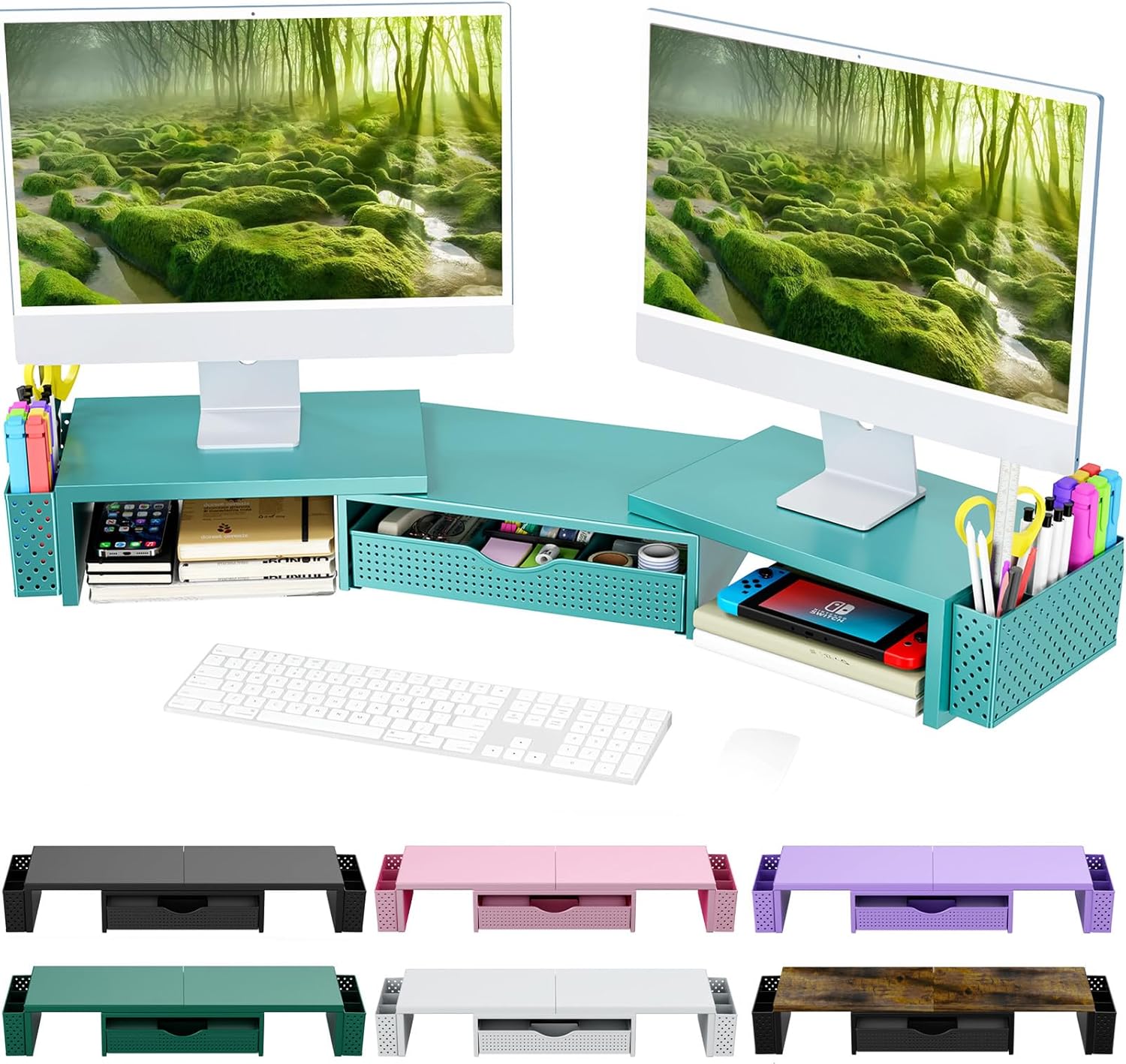 Dual-screen office efficiency improvement: This desktop organizer is equipped with a dual-display stand, which can place two monitors at the same time, effectively expanding the workspace. It also has adjustable length (27.6-40.6 inches) and angle to provide you with a better viewing experience.