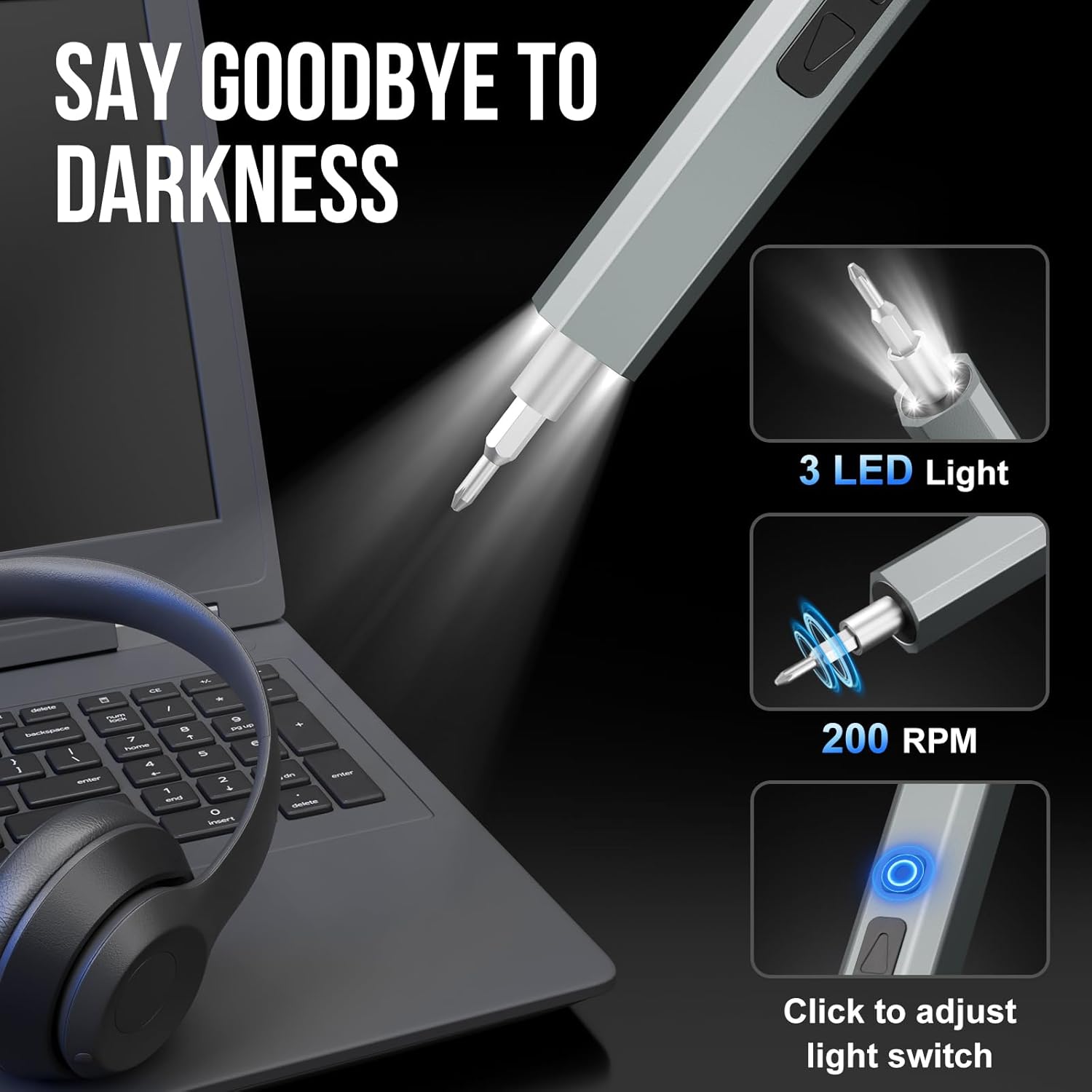 【Rechargeable and Long-Lasting】This automatic screwdriver equips a 350mAh lithium-ion battery which has undergone 28 battery-related tests to ensure safety and a longer working time. With a fast charging time of 60 minutes, this electric screwdriver cordless provides continuous power for your projects. And universal Type-C charging interface makes charging convenient for the precision electric screwdriver
