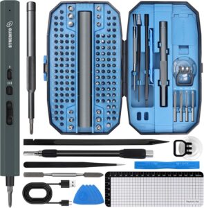 Complete Electric Screwdriver Kit: The STREBITO 155-piece small electric screwdriver set includes an electric screw driver, a manual screwdriver, 4 long bits, 136 common bits, and 13 additional repair tools. This comprehensive precision screwdriver set electric is ideal for repairing computer, laptop, cell phone, PC, RC car, drone, switch, PS4 PS5 console and controller, watches, and other IT tech devices