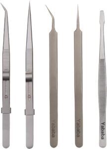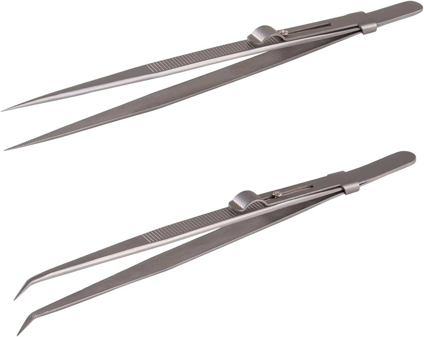 Package Include : fine tip straight tweezers x 1, fine tip angled tweezers x 1, Straight tweezers with lock x 1, curved Straight tweezers with lock x 1, rounded spade tip straight tweezers x 1, a total of 5 pieces.Out of the ordinary : Compared with their counterparts, they are all medium-length ESD tweezers, which are inconvenient to grasp. We consider making extended elastic precision stainless steel tweezers for customers to improve work efficiency.2 Pcs highly elastic adjustable stainless steel tweezers with lock for easy locking.reducing your working burden and improving working efficiencyWidely Applications : Tweezers Tools Kit apply to repair precision devices, circuit boards, digital products, pick small items and so on. Excellent for electronics repair tool, mobile phone repair, crafts, welding, medical, paper carving, embroidery, styling, watch repair, jewelry-making, Laboratory work, Hospital surgery, diamond painting, Nail Art sticker jewelry and other fine crafts