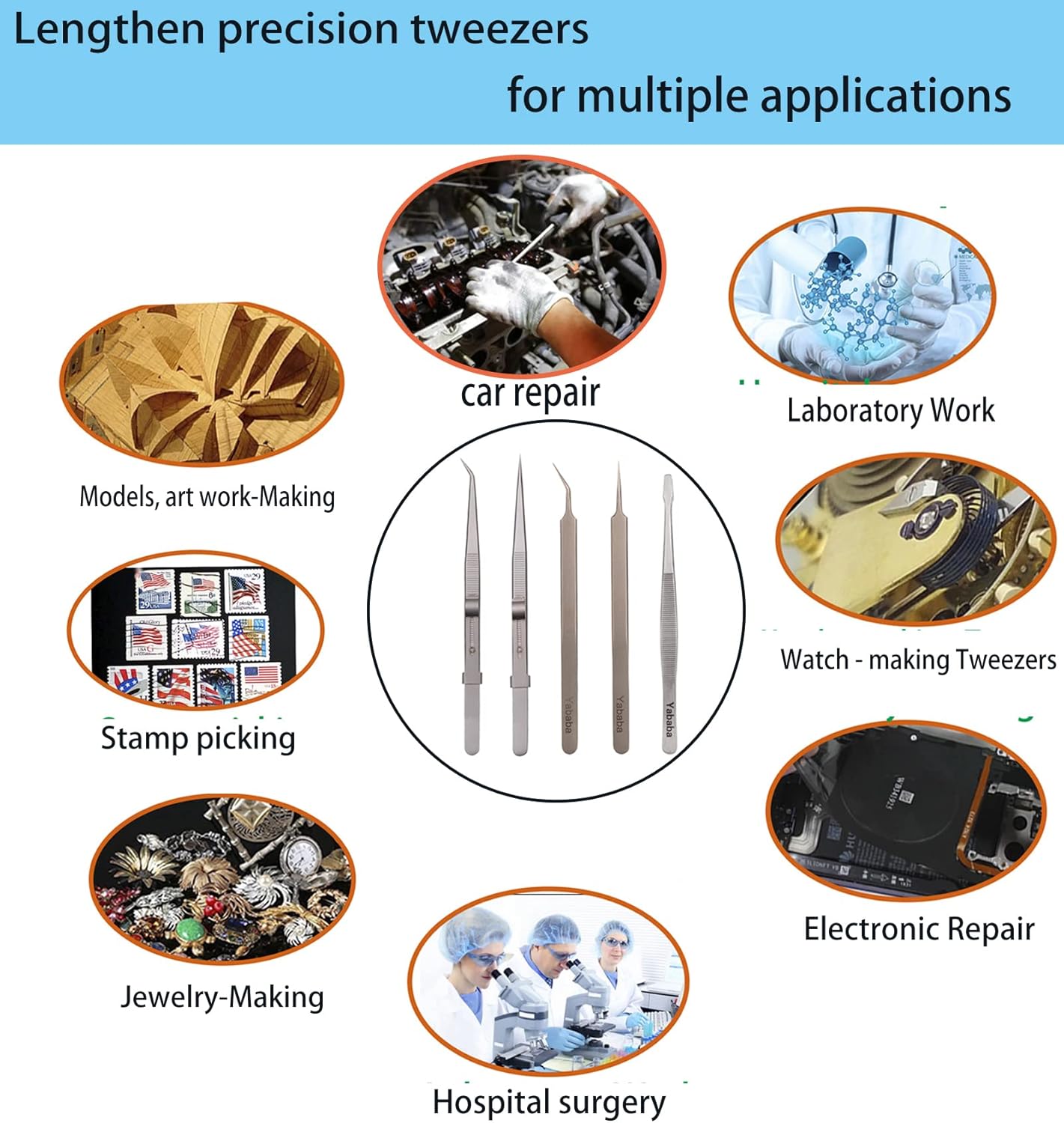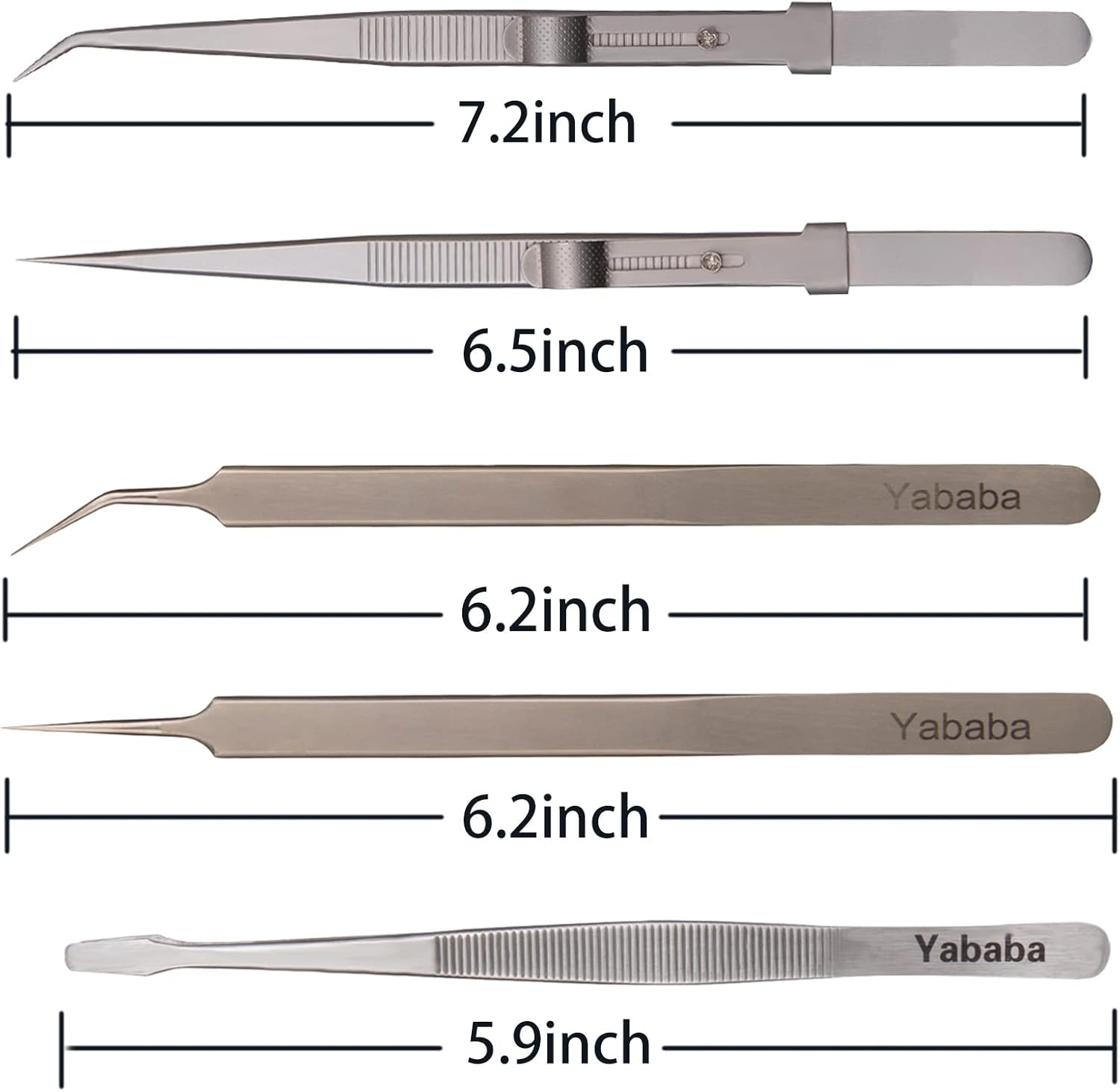 The tweezers set include different tweezers, meet your different needs, such as Laboratory, Hobby, and so on !